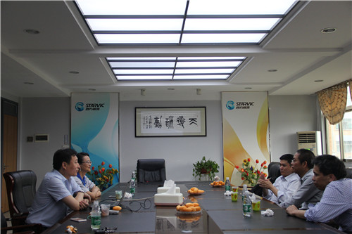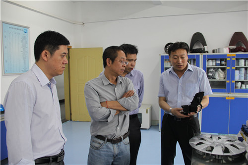 梁书记一行与广东优巨新材料研究有限公司王贤文(左二)洽谈