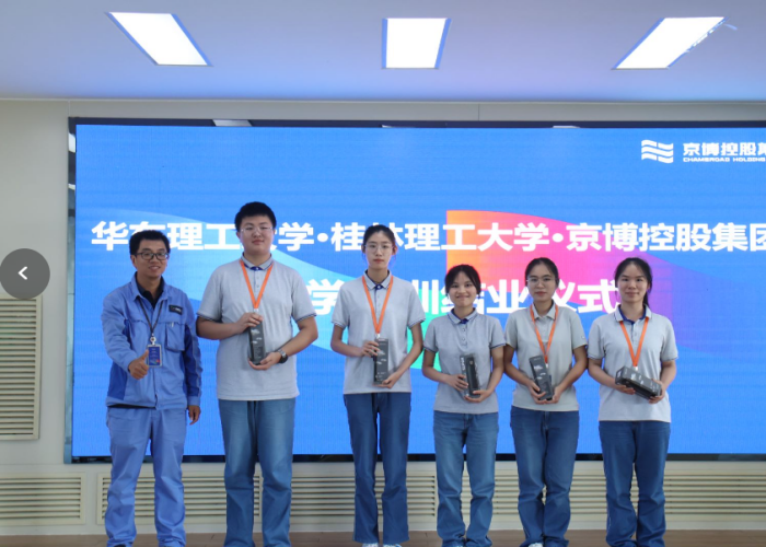 根据培养方案及教学计划,化学工程与工艺专业81名学生于2024年7月15日至8月9日,在化工教研室王桂霞、唐富顺、吕慧丹、冯艳艳、及方华、张秀清六位老师的带领下前往山东京博控股集团股份有限公司进行为期约1个月的生产实习和毕业实习。 在学训中,同学们深刻体会到了京博公司对安全生产、工艺改进、科技创新、人才培养等方面的重视,感受到了京博“产业报国,服务社会”的社会责任与担当;京博公司“立德树人,让论文写在大地上,让人才成长在实践中”的育人目标更是让同学们深刻体会到京博公司的“仁孝”文化,通过了解京博公司的奋斗历程和所取得的巨大成就,同学们增强了对化工专业的认同感和自豪感。 本次生产实习以课题实践汇报总结会的形式画上完美句号。总结会上,学生代表丁智远和周珍红分享他们在京博的学训生活和收获,并获得了优秀学训团队的称号,展现了桂工学子的精神风貌。王桂霞老师作为教师代表发言,非常感谢京博控股集团给予实习学生成长成才的机会,不仅学生收获满满,带队老师也深刻体会到了京博控股集团在培养大学生方面的强烈的社会责任感,希望在未来培养人才方面,校企通力合作,为国家培养更多优秀的接班人。 图1:周珍红同学汇报现场 图2:丁智远团队获得优秀结业证书 图3:王桂霞老师总结发言 图4:学训结业现场 (一审:王桂霞;二审:马文硕;三审:何方)