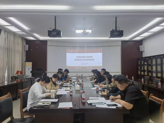导航痕迹 当前位置: 首页 >> 党建工作 >> 党建工作 >> 正文 学院召开2024年第三季度意识形态工作分析研判会议 作者:马文硕 发布日期:2024-10-15 浏览次数: 10月14日下午,学院在12217会议室召开了2024年第三季度意识形态分析研判会议,旨在全面总结本季度意识形态工作情况,分析研判当前形势,部署下一阶段工作任务。会议由学院党委书记彭代江主持,学院领导班子成员、各教研室主任、副主任、辅导员等人员参加了会议。 会议之初各分管领导就上半年至今意识形态工作的开展情况、存在的问题以及下一步工作计划进行了详细汇报。汇报内容涵盖了课堂教学、校园文化、网络舆情、师生思想动态等多个方面,全面反映了学院意识形态工作的实际情况。与会人员围绕当前意识形态领域的新情况、新问题进行了深入分析和研判。大家一致认为,当前学院意识形态工作总体平稳有序,但也存在一些不容忽视的问题和挑战。针对这些问题,会议提出了具体的应对措施和建议,包括加强师生思想政治教育、完善网络舆情监测机制、强化意识形态工作队伍建设等。 会议现场 (一审:马文硕 二审:熊艳 三审:李少华) 上一条:应用化学教工党支部参观八路军桂林办事处纪念馆 下一条:坚定理想信念,开启大学新征程 ——我院召开2024级新生入党启蒙教育