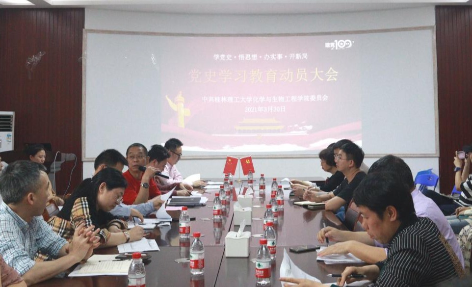 为认真学习贯彻落实中央、自治区、学校党委决策部署,高标准高质量开展好党史学习教育,3月30日,我院于雁山校区12217召开党史学习教育动员大会。学院全体教职工参加会议,本次会议由学院党委书记梁军主持。