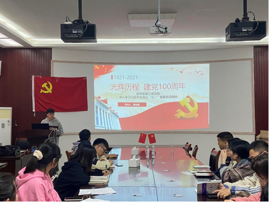 导航痕迹 当前位置: 首页 >> 党建工作 >> 党史学习教育 >> 正文 【党史学习教育】研究生第三党支部开展深入学习习近平总书记“七一”重要讲话精神专题党课 作者:熊艳 黄道坤 黄金福 发布日期:2021-11-17 浏览次数: 牢记初心使命,赓续精神血脉。为深入学习贯彻落实习近平总书记“七一”重要讲话精神,鼓励支部成员牢记党的初心使命,11月16日晚,学院研究生第三党支部于萃华楼12217会议室开展了深入学习习近平总书记“七一”重要讲话精神专题党课。党课由支部副书记黄金福同志主持,支部全体党员同志参加。 党课开始,黄金福同志带领全体党员同志共同学习及观看“习近平总书记在庆祝中国共产党成立100周年大会上发表了重要讲话”的视频。随后,黄金福同志分别从学习百年党史,增强历史自觉;高举真理旗帜,感悟思想伟力;树牢宗旨意识,站稳人民立场;发扬光荣传统,奋力开拓新局四个方面对习近平总书记的“七一”重要讲话内容进行解读,并要求支部同志结合总书记的讲话内容,提高自身的思想觉悟,树牢“四个意识”、坚定“四个自信”,做到“两个维护”,做到“事事有回音、件件有落实”,找差距,补短板,保持求真务实的态度工作学习,以实际行动向党组织靠拢。 通过本次党课的学习,支部党员同志们纷纷表示在未来的学习生活中将坚持全面地学、深入地学、辩证地学、反复地学,不忘初心使命,切实践行学史明理、学史增信、学史崇德、学史力行,真正做到信仰如山、信念如铁、信心如磐。 党课现场(一) 党课现场(二) 上一条:【党史学习教育】能源化学工程党支部开展“深入学习习近平总书记在纪念辛亥革命110周年大会重要讲话”专题党课 下一条:【党史学习教育】本科生第二党支部开展“学习习近平总书记视察广西时的重要讲话精神宣讲”主题党日活动