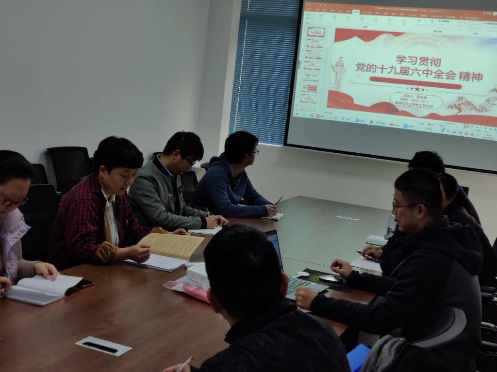 导航痕迹 当前位置: 首页 >> 党建工作 >> 党史学习教育 >> 正文 【党史学习教育】能源化学工程党支部开展“学习贯彻党的十九届六中全会精神”专题党课 作者:海杰峰 发布日期:2021-12-08 浏览次数: 2021年12月6日下午,我院能源化学工程党支部在12115会议室开展“学习贯彻党的十九届六中全会精神”,党课由支部书记海杰峰同志主持。 课上海杰峰同志首先带领全部党员同志学习了《党的十九届六中全会精神》内容。党课强调,这次全会是在我们党成立一百年的重要历史时刻,在党和人民胜利实现第一个百年奋斗目标、全面建成小康社会,正在向着全面建成社会主义现代化强国的第二个百年奋斗目标迈进的重大历史关头召开的一次重要会议。教工党支部要把学习宣传贯彻党的十九届六中全会精神作为当前最重要的政治任务,组织各支委集中学习、宣讲辅导,全面系统学习领会全会精神的丰富内涵与核心要义,用全会精神引导激励党员同志,以史为鉴、开创未来,埋头苦干、勇毅前行。 党课现场 上一条:【党史学习教育】1946伟德国际源自英国研究生第一党支部开展“学习贯彻党的十九届六中全会精神”党课 下一条:【党史学习教育】学院开展党史学习教育专题读书班暨党委中心组(扩大)理论学习会