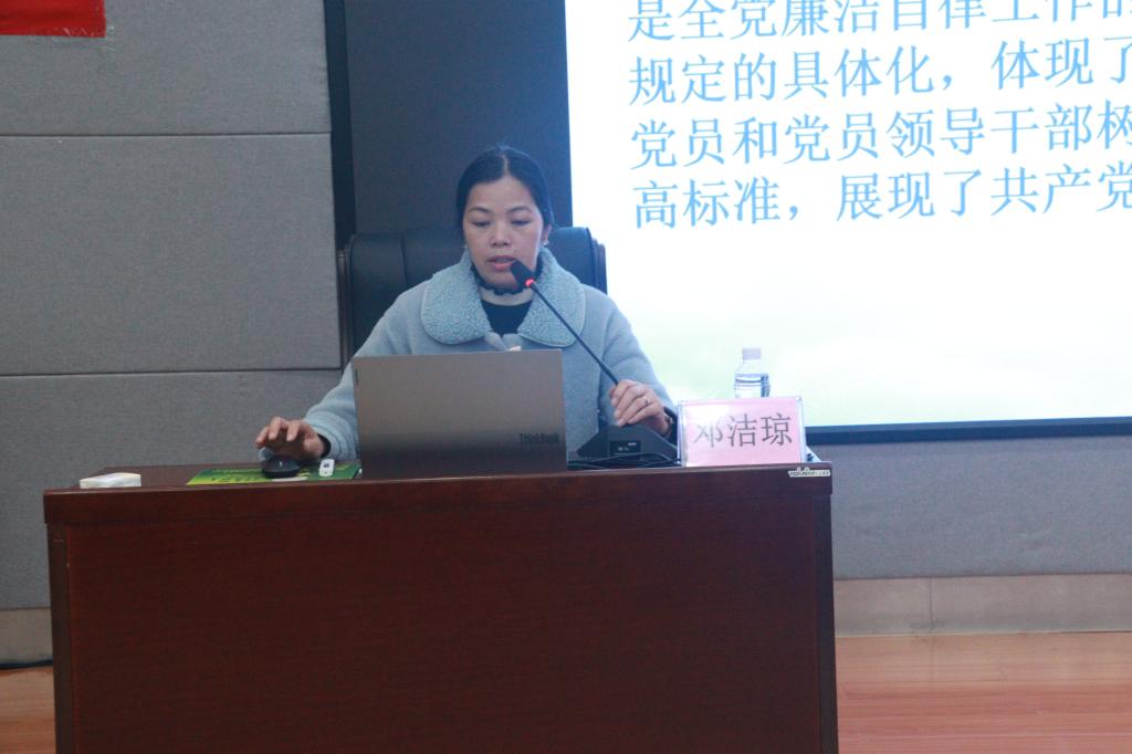 导航痕迹 当前位置: 首页 >> 党建工作 >> 党史学习教育 >> 正文 【党史学习教育】学院第二十二期预备党员培训班第五讲---《党纪党规与党风廉政建设》 作者:熊艳 梁朝东 发布日期:2021-11-24 浏览次数: 为引导广大预备党员坚定理想信念,提升党性修养,11月24日晚,邓洁琼老师为预备党员讲授主题为《党纪党规与党风廉政建设》主题党课。 首先,邓洁琼老师阐述了党纪党规的主要内容,并对党的八大纪律进行详细解说,分别指出每种纪律的违纪行为,通过具体案例让我们对违反党的纪律的严重性有了更加清晰的认知。随后,邓老师以习近平总书记党风廉政建设和反腐败斗争重要论述为中心出发,说道党风廉政建设和反腐败斗争是我们必须抓好的重大政治任务。最后,告诫我们学校学生党员应加强反腐倡廉及如何加强,认为我们应该树立正确的“三观”,做到“四严禁”、特别是要提高个人修养,重点牢记“五慎”。 本次党课培训深化了全体预备党员对党纪党规的学习,有助于全体预备党员以更加严谨的态度约束自己的行为,通过学习进一步巩固自己的共产主义理想信念,不断提高党性修养,增强为人民服务的本领,成为一名新时代下的优秀共产党员。 党课现场(一) 党课现场(二) 上一条:【党史学习教育】学院第二十二期预备党员培训班第六讲——《学风建设与党员的先锋模范作用发挥》 下一条:【党史学习教育】学院第二十二期预备党员培训班第四讲——《党性修养与对党忠诚》