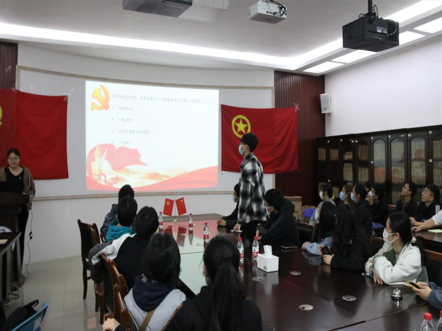 导航痕迹 当前位置: 首页 >> 党建工作 >> 党史学习教育 >> 正文 【党史学习教育】我院本科生第三党支部与2021级创新团支部联合开展 “以党带团,以团带队”知识竞答党日活动 作者:熊艳 李明 发布日期:2022-03-23 浏览次数: 为进一步加强党、团支部联系建设,做好基层团组织培养, 努力形成党、团互促互进、共同发展的良好局面,充分发挥党支部、团支部的先锋模范作用。3月22日,我院本科生第三党支部于12217会议室开展“以党带团,以团带队”知识竞答党日活动,以增强同志们的党性修养。本次活动由张可嘉同志主持,支部35名党员参加,2021级创新团支部全员参加。 活动伊始,张可嘉同志开场,并请支部书记熊艳就此次活动进行开场发言,熊艳老师表示这次活动有利于党、团支部更好的理论学习,也能极大地促进党、团之间良好的互动关系,希望各位同学积极参与并乐在其中。紧接着,张可嘉同志介绍活动流程与竞答规则,本次活动分为三个环节:一是党史理论知识竞答,二是围绕两会提出的议题进行自由讨论并发表观点,三是优秀学长学姐作为优秀党员经验分享。接着,在知识竞答环节,党、团支部成员积极踊跃地回答问题,也充分展现了每个人对党史知识的了解与认识,更加灵活生动地将理论知识映刻于心。 在第二个环节,由岳誉华同志提出在两会提出的“博物馆”、以及“双减”等两个话题进行讨论,讨论环节热烈又不失秩序,每个人各抒己见,让两个话题的深度与高度逐渐加强,理论知识应用于实践的讨论,彰显了同志们思维的灵动性。最后一个环节,颜文菊同志根据自己在党支部的变化与体会给予创新团支部的同学们自己独到的经验,并与同学们互动问答,让创新团支部的同学们对自己的大学生活有了更加明确的目标与规划。最后,张可嘉同志说到,党、团支部的联系需要时刻维护,才能在良好发展下去。 本次主题党日活动加强了支部建设和团组织建设,党团联动共建的“知识竞答”充实了党员与团员的理论知识储备,为今后用理论武装自己,用理论指导实践打下了坚实的基础。今后党员同志也将积极发挥党员先锋模范作用,为团支部的同学们排忧解难,不忘初心,用心服务。 活动现场(一) 活动现场(二) 合影留念 上一条:【党史学习教育】学院召开教职工理论学习会 下一条:【党史学习教育】我院本科生第三党支部开展 “深入学习贯彻党的十九届六中全会精神”主题党课