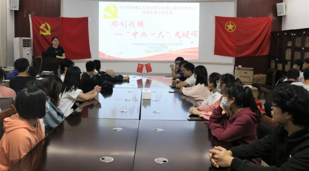 为响应党组织号召,深入学习党的十九大及十九届历次全会精神,继续发扬历史主动精神,以实际行动迎接党的二十大胜利召开。4月22日,我院本科生第三党支部于12217教室展开“重温一大历史,传承红船精神”党日活动,以确保在政治立场、政治方向、政治原则、政治道路上始终同以习近平同志为核心的党中央保持高度一致。本次活动由张可嘉同志主持,支部35名党员参加,应化2021-创新团支部全员参加。