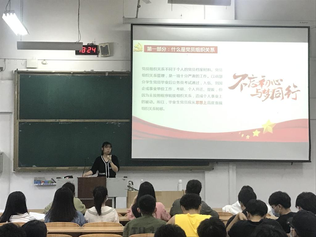 导航痕迹 当前位置: 首页 >> 党建工作 >> 党史学习教育 >> 正文 【毕业生党员主题教育实践活动】学院召开2022届毕业生党组织关系转接培训会 作者:熊艳 发布日期:2022-05-24 浏览次数: 为增强毕业生党员党性观念及党组织关系转接意识,规范党组织关系转接工作流程,确保我院毕业生党员顺利完成党组织关系转接,以严明的组织纪律走向新的岗位,5月21日,我院在06207召开2022届毕业生党组织关系转接培训会,会议由学院组织员熊艳主持,学院全体毕业生党员参加会议。 会上,熊艳老师首先强调了党员党组织关系转接工作的重要性,提醒各位党员要高度重视党组织关系的转接工作,切实增强组织观念,按时转移党组织关系,勿因自身疏忽等原因造成各种后续问题以致脱党。随后,熊艳老师结合上级党组织关于毕业生党员关系转接相关内容,针对党组织关系转接的具体流程、方法步骤和工作要求进行解读,重点从区内、区外、已落实工作单位、未落实工作单位等几个方面进行了详细讲解,强调了在不同情况下组织关系转接的方法、步骤、具体时间安排及注意事项等。 本次会议的召开,扎实落实了学院毕业生党员组织关系转接工作,也强化了毕业生党员的模范意识和担当意识,激励同学们永葆初心,发挥党员的先锋模范作用。 会议现场 上一条:【党史学习教育】我院院长匡小军为学生党员上主题党课 下一条:【毕业生党员主题教育实践活动】研究生第二党支部召开“坚持党的领导传承红色基因扎根中国大地走出一条建设中国特色世界一流大学新路”专题学习会