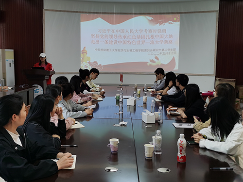 导航痕迹 当前位置: 首页 >> 党建工作 >> 党史学习教育 >> 正文 【毕业生党员主题教育实践活动】研究生第二党支部召开“坚持党的领导传承红色基因扎根中国大地走出一条建设中国特色世界一流大学新路”专题学习会 作者:熊艳 朱皓 周雪英 发布日期:2022-05-23 浏览次数: 坚持党的领导,传承红色基因,扎根中国大地是建设中国特色世界一流大学的根本遵循,是指导我国教育文化事业建设的基本原则。为加强支部成员的理论武装,了解党的领导在教育工作上的重要指导,5月17日下午,我院研究生第二党支部召集全体在校党员和积极分子在12217会议室开展“坚持党的领导传承红色基因扎根中国大地,走出一条建设中国特色世界一流大学新路”专题学习会,认真学习习近平总书记在中国人民大学考察调研的重要讲话精神。 本次学习会由支部副书记黄万锦同志主持。学习会开始,黄万锦同志介绍了本月理论学习的主要内容--习近平在中国人民大学考察时强调:坚持党的领导传承红色基因扎根中国大地,走出一条建设中国特色世界一流大学新路。首先,全体同志共同观看了此次习近平总书记在中国人民大学考察调研的相关新闻内容。接下来,黄万锦同志带领大家学习了习近平总书记的重要讲话,“广大青年要做社会主义核心价值观的坚定信仰者、积极传播者、模范践行者,向英雄学习、向前辈学习、向榜样学习,争做堪当民族复兴重任的时代新人,在实现中华民族伟大复兴的时代洪流中踔厉奋发、勇毅前进。”最后,各党员同志和积极分子纷纷发表了自己的学习心得,大家表示要坚定中国特色社会主义道路自信、理论自信、制度自信、文化自信,在全面建设社会主义现代化国家新征程中勇当开路先锋、争当事业闯将,以实际行动迎接党的二十大胜利召开。 坚持党的领导,是建设世界一流大学的根本保证,是指导我国教育文化事业建设的基本原则,是发展繁荣高校哲学社会科学的新方向。“为谁培养人、培养什么人、怎样培养人”始终是教育的根本问题。通过此次专题学习会的开展,大家认真体会此次讲话精神,在实现中华民族伟大复兴新征程上,坚定不移听党话、跟党走,努力成长为堪当民族复兴重任的时代新人。 学习会现场(一) 学习会现场(二) 上一条:【毕业生党员主题教育实践活动】学院召开2022届毕业生党组织关系转接培训会 下一条:【二十正青春】我院本科生第三党支部与应化2021-创新团支部联合开展“重温一大历史,传承红船精神”党日活动