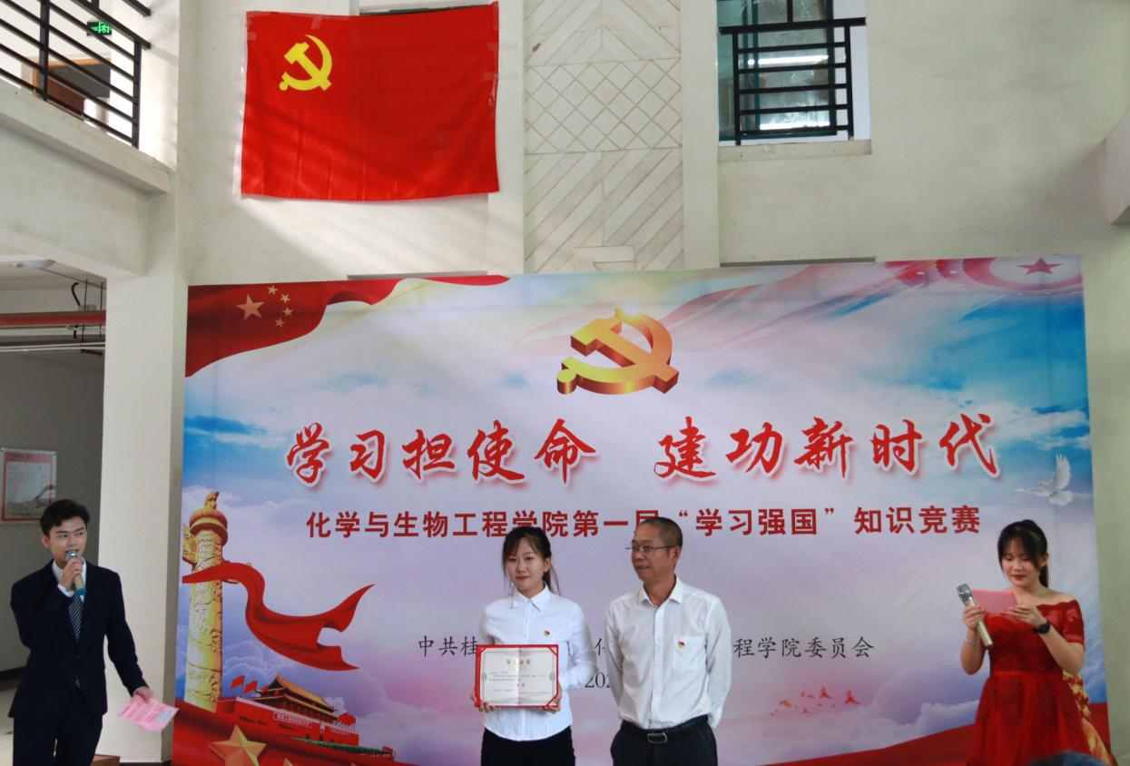 此次活动在主持人的带领下有序进行,在“去伪存真”环节,各党支部选手平分秋色,精神饱满,认真作答;随着“学无止境”环节题目难度的加深,各党支部代表队间的竞争显得愈发激烈;“共渡难关”环节将比赛推向了高潮,比赛进入白热化状态,各队选手齐心协力、快速思考、比记忆、拼知识,不错失任何一个得分的机会。经过最后一个环节“巅峰对决”,本科生第二党支部最终脱颖而出摘得桂冠,本科生第三党支部和本科生第四党支部并列获得亚军,应用化学教工党支部、研究生第二党支部和本科生第一支部获得季军。本次“学习强国”知识竞赛以此落下帷幕。