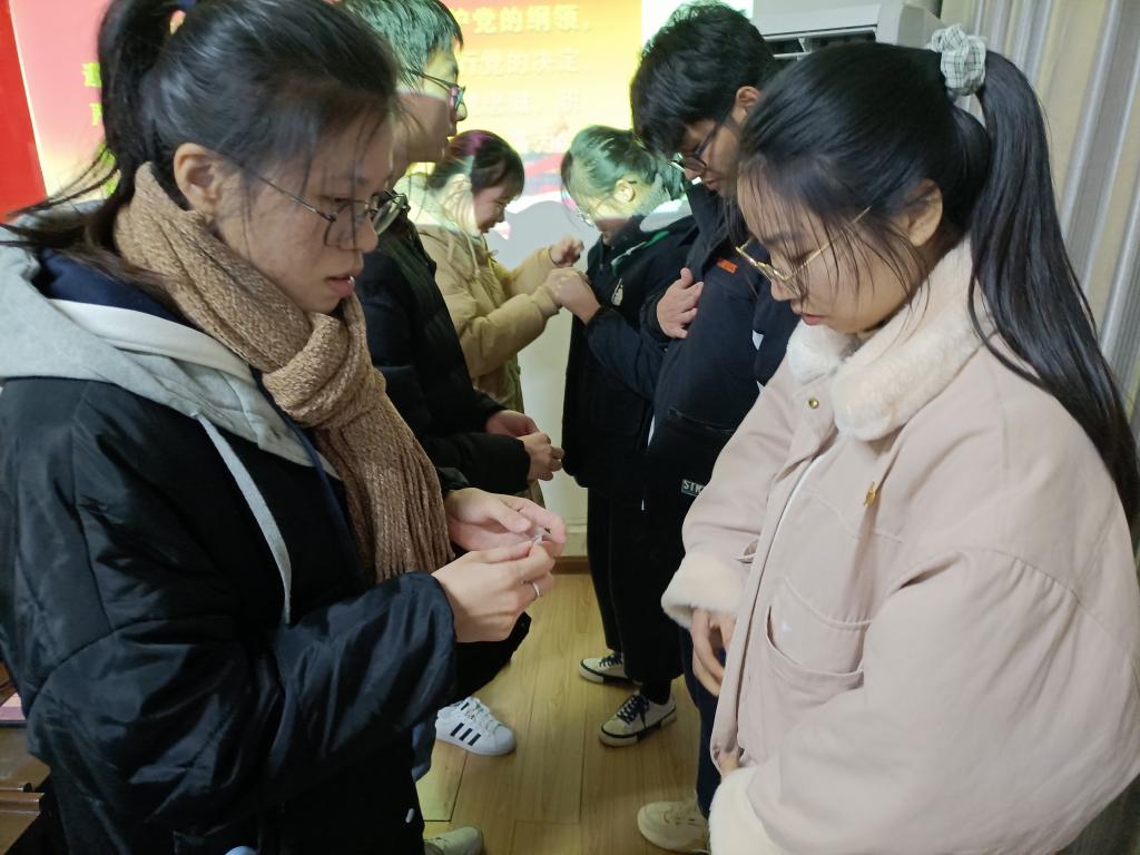 导航痕迹 当前位置: 首页 >> 党建工作 >> 不忘初心牢记使命 >> 正文 【党员发展】1946伟德国际源自英国本科生第一党支部召开预备党员接收大会 作者:张伟颀、覃锋锋 发布日期:2020-12-17 浏览次数: 2020年12月16日19:30,我院本科生第一党支部在09607会议室召开预备党员接收大会。本次会议全体党员同志参加,其中有表决权党员为六名,主要对是否接收邓树群、蒋琳、倪振斌三名发展对象为支部预备党员进行讨论和表决。 会议伊始,郑靖萱同志对本次大会流程进行简单介绍并宣布接收大会开始。随后,发展对象邓树群、蒋琳、倪振斌分别汇报了自己的入党动机,并从思想、学习、工作、生活等方面对自身进行总结,表明了自己向党组织靠拢的决心。接着,入党介绍人分别介绍了发展对象的基本情况,并对其能否加入党组织表明了态度,同时支委会向大会汇报了发展对象的政治审查报告。随后在场的党员同志对发展对象进行更深一步的提问和了解后,正式党员根据其汇报及入党介绍人意见进行投票。最后,由郑靖萱同志宣布大会决议:邓树群、倪振斌6票赞成、0票反对,0票弃权;蒋琳5票赞成、0票反对,1票弃权。根据结果,大会同意接收三名发展对象成为中共预备党员。 全体党员同志对三名新同志的加入表示祝贺与欢迎,并希望三名同志在今后学习和工作生活中,以发展对象考察期的努力为起点,不断提升自我,牢记初心,用党员标准严格要求自己,改正自己的不足,努力成长为一名合格的中共党员。 郑靖萱同志主持会议 支部党员同志对发展对象材料进行审查 正式党员为预备党员佩戴党员徽章 全体党员同志对党旗宣誓 上一条:【不忘初心、牢记使命】我院举办2020年党支部工作总结及评优促建活动 下一条:【不忘初心、牢记使命】研究生第二党支部毕业生党员交流分享会