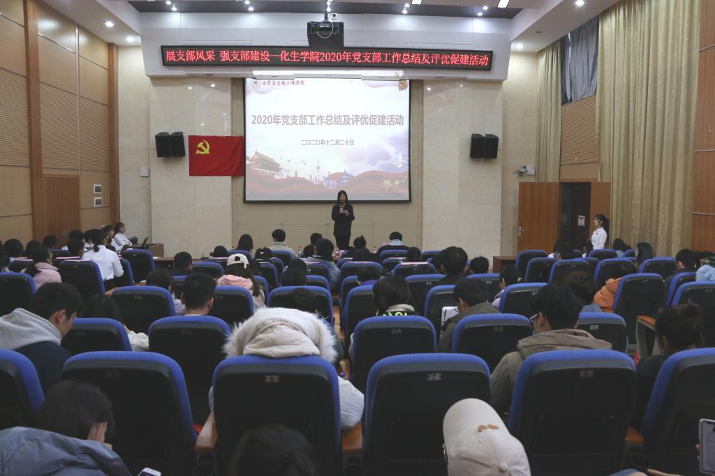 2020年12月20日下午,我院党建办在萃华楼报告厅组织开展“化生学院2020年党支部工作总结及评优促建活动”。学院本科生第二党支部书记高昌洪老师、本科生第四党支部书记梁精华老师、研究生第二党支部书记朱皓老师、18级辅导员张伟颀老师、学工办见习老师汤玉昆老师及各学生党支部全体成员参加了本次活动。