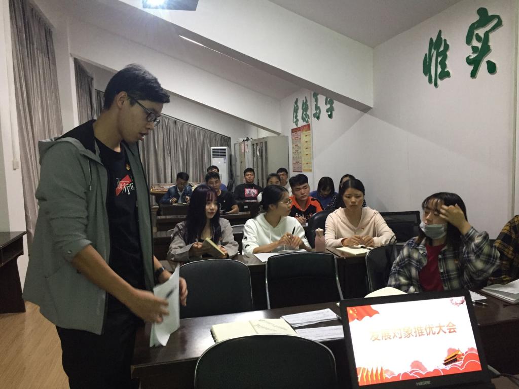 2019年10月13日晚,我院研究生第二党支部在09607教室召开了支部发展对象推优大会,讨论是否将方萍、刘鑫鑫两名积极分子列为发展对象人选的问题。支部全体党员参加会议,会议由林京宇同志主持。