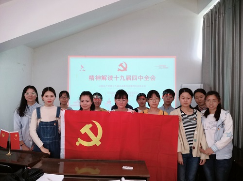 为贯彻学习党的十九届四中全会精神,增强支部党员对中国特色社会主义制度的了解。2019年11月5日学院本科生第三党支部于09607开展“解读十九届四中全会”主题学习会。本次活动由本科生第三党支部书记熊艳老师主持,支部全体党员参加此次活动。