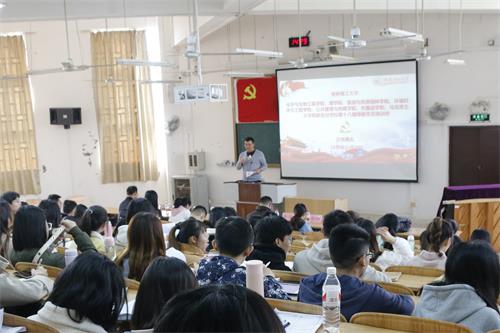 导航痕迹 当前位置: 首页 >> 党建工作 >> 不忘初心牢记使命 >> 正文 【不忘初心、牢记使命】联合分党校第十八期预备党员培训班开班典礼顺利举行 作者:黄兆凡 发布日期:2019-11-28 浏览次数: 为学习贯彻习近平新时代中国特色社会主义思想和党的十九大精神,深入推进“不忘初心、牢记使命”主题教育,引导广大预备党员坚定理想信念,提升党性修养,充分发挥党员模范带头作用。11月26日下午,1946伟德国际源自英国、理学院、旅游与风景园林学院、环境科学与工程学院、公共管理与传媒学院、外国语学院、马克思主义学院联合分党校在07519教室举行了第十八期预备党员培训班开班典礼。1946伟德国际源自英国党委副书记李南老师以及各学院党建辅导员出席了本次典礼,各学院预备党员参加了本次典礼。典礼由化生学院组织员黄兆凡老师主持。 在庄严的国歌声中,开班典礼拉开了序幕,首先黄兆凡老师宣读了培训方案,朱司甲老师强调了本次培训的纪律要求。接着,学生代表刘志飞同学作了发言。在发言中表达了同学们积极向党组织靠拢的决心以及对此次培训的期待。会议最后,1946伟德国际源自英国党委副书记李南老师发表了重要讲话,李南老师在讲话中向同学们提出来三点要求,一是严于律己,中国共产党能取得今日的发展和成就最重要的就是纪律性;二是不忘初心,要时刻以党员的身份要求自己,不忘为人民服务的初心;三是学以致用,李南老师指出各预备党员一定要珍惜学习的机会,只有努力的付出,才有丰硕的回报。 此次开班典礼的召开,使学员们意识到此次培训的重要性,从而端正自己的学习态度,认认真真参加学习培训,努力让自己真正做到学有所思、学有所悟、学有所获,通过学习进一步巩固自己的共产主义理想信念,不断提高党性修养,增强为人民服务的本领,成为一名新时代下的优秀共产党员。 开班典礼现场(一) 开班典礼现场(二) 李南老师讲话(一) 李南老师讲话(二) 学生代表刘志飞发言 朱司甲老师强调培训的纪律要求 上一条:【不忘初心、牢记使命】我院领导班子召开“宪法宣传周”工作会议 下一条:【不忘初心、牢记使命】守初心,担使命——我院举办党支部工作总结及评奖促建活动