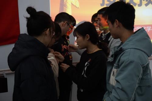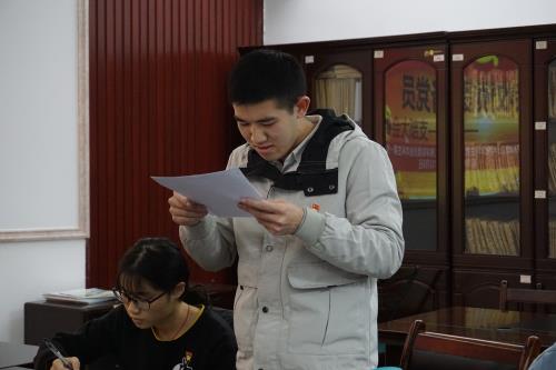 导航痕迹 当前位置: 首页 >> 党建工作 >> 不忘初心牢记使命 >> 正文 【不忘初心、牢记使命】学院本科生第一党支部召开接收预备党员大会 作者:赖廷民 发布日期:2019-12-08 浏览次数: 2019年12月6日晚,我院本科生第一党支部在12217会议室召开了接收预备党员大会。参与此次会议的有本科生第一党支部全体党员、预备党员及发展对象,大会由支部负责人陈楠主持。本次大会对接收何丽、陈文俊、郑靖萱、杨帆四名发展对象为支部预备党员进行讨论和表决。 会议伊始,由陈楠同志宣读大会议程并宣布大会开始。首先由四名发展对象分别上台陈述自己的入党动机、对党的认识以及向党组织汇报自己成为入党积极分子以来工作、学习、思想、生活上的转变。接着入党介绍人分别阐述发展对象的基本情况,并对其能否加入党组织表明态度,支委会向大会汇报发展对象的政治审查报告。随后支部党员指出四名发展对象存在的问题并进行提问,对其有更深的了解。接着由支部正式党员进行不记名投票,赖廷民同志监票,郑秋杏同志计票,陈楠同志宣布大会决议,何丽、陈文俊、郑靖萱、杨帆四名发展对象全票通过成为中共预备党员。大会最后,何丽、陈文俊、郑靖萱、杨帆四名预备党员面对党旗庄严宣誓,由支部党员同志为他们佩戴党员徽章。 陈楠同志表示,四名预备党员要牢记自己的政治生日,铭记自己的身份,在日常生活中严格要求自己,及时向党组织汇报思想,充分发挥一名党员的带头作用,不断改进自己,做一名副其实的共产党员。 李楠主持会议 黎江宣读政治审查报告 正式党员为预备党员佩戴党员徽章 全体党员对国旗宣誓 上一条:【不忘初心、牢记使命】我院积极开展“宪法宣传周”系列活动 下一条:【不忘初心、牢记使命】研究生第二党支部召开预备党员接收大会