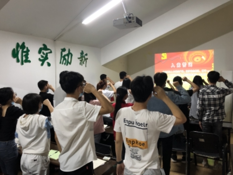 会议上,与会的支部党员对七名发展对象的接收问题依次进行了讨论。会议伊始,发展对象着重就自己现实表现情况和成为发展对象以来的进步情况向与会党员进行了汇报;随后,入党介绍人宣读入党介绍人意见并由各与会党员就发展对象现实表现中的优缺点进行评议;接着,有表决权的党员对是否同意接收进行表决。通过表决,与会党员一致同意通过接收昌维金等七名发展对象为预备党员的决议。最后,张思宇同志领誓,全体党员宣读入党誓词。