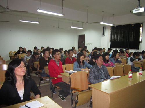 下午两点半,大会正式开始。李院长首先从为什么考研着手,用生动的语言讲述了考研读研的优势,并语重心长地告诫大家,确定目标后,就应立即行动,而不因其他借口停下深造的步伐。他还引用了成功考入名牌大学的学长学姐们的事例鼓励大家,增强同学们的自信心。李院长在讲话中还重点分析了报考本校研究生的优势以及阐明了学校为鼓励同学们考研而制定的一系列措施。针对同学们关心的如何复习备考问题,李院长建议大家要做好自我定位,合理安排好时间复习,尽快联系导师,搜集考研资料,科学备考,从而提高自己成功的几率。随后,进入自由问答环节。针对同学们提出的种种疑惑,老师们都进行了耐心的解答。