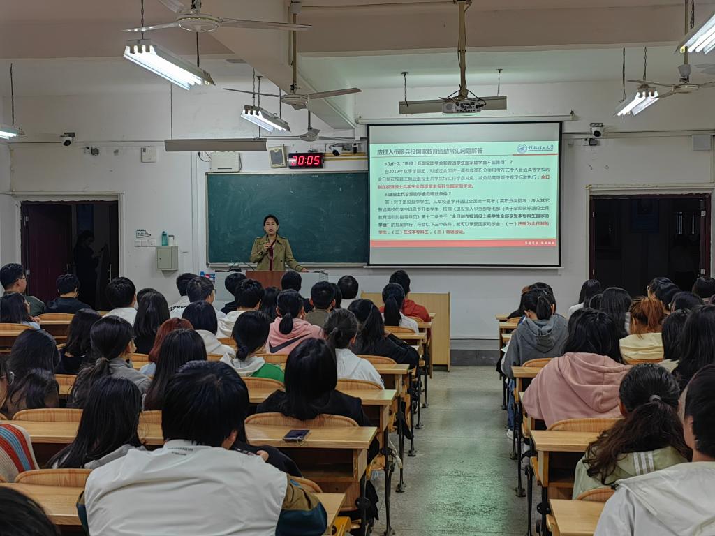 导航痕迹 当前位置: 首页 >> 伟德国际 >> 学生活动 >> 正文 资助育人文化节 | 我院开展2023年学生资助政策宣讲会 作者:梁精华 许家松 发布日期:2023-04-24 浏览次数: 为进一步宣传落实好党和国家的资助政策,推进学院学生资助工作发展,加大学生资助政策宣传力度,促进高校国家资助政策深入人心。4月23日,我院在雁山校区06104、06206、06401、07318教室面向学院全体学生组织开展了资助政策宣讲活动,年级辅导员梁精华、王凯浩、张伟颀、朱皓作为主讲人进行本次宣讲。 宣讲会上,各年级主要围绕国家“奖、助、贷、勤、补、绿色通道+校内资助”多元混合体系进行讲解,重点解读了国家奖学金、国家励志奖学金、自治区人民政府奖学金、国家助学金和应征入伍服兵役国家教育资助等资助政策。其中,辅导员张伟颀重点对比了今年国家助学金资助等级和资助金额与往年的不同,提醒同学们注意政策变化;辅导员梁精华则围绕国家助学贷款详细讲解了贷款的申请条件、申请对象、申请流程;辅导员王凯浩结合学生入伍情况详细讲解了应征入伍服兵役教育资助金额、申请时间和所需材料等;毕业班辅导员朱皓针对毕业年级特点,重点讲解了毕业生贷款还款最新政策和注意事项等。 本次活动的开展,有效地加深了学生对国家资助政策的了解,提高了学生的政策知晓率,进一步加强了他们的感恩意识和责任意识,增强了他们参与活动的积极性,对进一步推进我院资助育人工作具有十分重要的意义。 2022级宣讲现场 2021级宣讲现场 2020级宣讲现场 2019级宣讲现场 上一条:资助育人文化节 | 我院开展“青春筑梦新时代 资助伴我向未来”励志成长主题观影活动 下一条:我院召开2023年春季学期学生安全教育主题班会