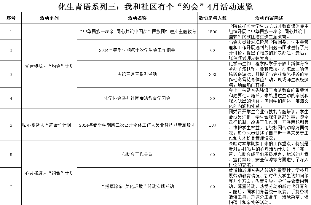 导航痕迹 当前位置: 首页 >> 伟德国际 >> 学生活动 >> 正文 【化生青语】化生青语系列三:我和社区有个“约会”4月活动速览 作者: 发布日期:2024-04-30 浏览次数: 为扎实推进学校“一站式”学生社区综合管理模式建设试点工作和1946伟德国际源自英国“三全育人”综合改革工作,提升学院“一站式”学生社区影响力,1946伟德国际源自英国将“一站式”学生社区以“党建+X”模式为基础,结合学院【化生青语】育人文化,将学院育人体系下沉社区,打造【化生青语】系列三——我和社区有个“约会”特色活动。4月份,结合学院社区团队,按照学院社区我和社区有个“约会”特色品牌活动,党建领航人“约会”计划、贴心服务人“约会”计划、心灵摆渡人“约会”计划三个系列活动同步推进,共同助力学院学子学习、生活等方面的发展。按照“约会计划”,学院举办活动如下。 (一审:陈千癸 二审:黄道坤 三审:李少华) 上一条:学院开展郑州大学化学学院研究生招生宣讲会 下一条:学院化学协会举办社团廉洁教育学习会