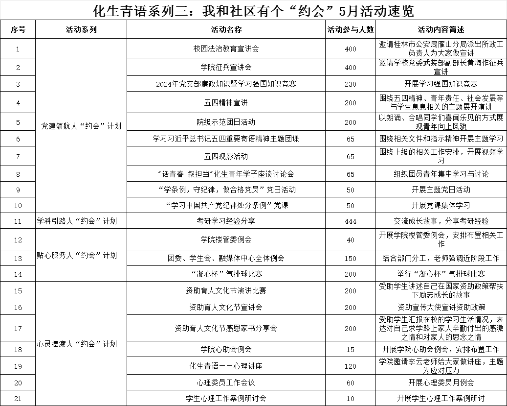 导航痕迹 当前位置: 首页 >> 伟德国际 >> 学生活动 >> 正文 【化生青语】化生青语系列三:我和社区有个“约会”5月活动速览 作者: 发布日期:2024-05-31 浏览次数: 为扎实推进学校“一站式”学生社区综合管理模式建设试点工作和1946伟德国际源自英国“三全育人”综合改革工作,提升学院“一站式”学生社区影响力,1946伟德国际源自英国将“一站式”学生社区以“党建+X”模式为基础,结合学院【化生青语】育人文化,将学院育人体系下沉社区,打造【化生青语】系列三——我和社区有个“约会”特色活动。5月份,结合学院社区团队,按照学院社区我和社区有个“约会”特色品牌活动,党建领航人“约会”计划、学科引路人“约会”计划、贴心服务人“约会”计划、心灵摆渡人“约会”计划四个系列活动同步推进,共同助力学院学子思想、学习、生活等方面的发展。按照“约会计划”,学院举办活动如下。 (一审:陈千癸 二审:黄道坤 三审:李少华) 上一条:学院召开心助会工作会议 下一条:以考促学,实战必胜——1946伟德国际源自英国举办大学生英语四级模拟考试