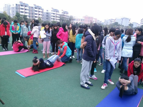 引体向上、仰卧起坐接力竞赛由每班选派6名男生,5名女生为代表,进行每人一分钟的项目接力赛。 在赛场上,女生们咬紧牙关,手指交叉抱住后脑勺,纤腰发力,收腹坐起,轻触膝盖,一个紧接着一个,像一只只精力充沛的小虾在垫子上一弓一弹,用顽强的毅力把自己最优秀的成绩展示出来。握杆、摆动、拉杆,这是男生队员硬体向上的连贯动作,在加油声中男生队员们一个接着一个,倾尽全力,展示强大臂膀的力量和无限的青春活力。活动在同学们的欢呼声和欢笑声中完满的举办成功.