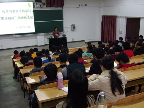 本次会议主要内容有两大方面:第一,陈老师对本学期宿舍社区工作级宿舍存在的问题进行总结和汇报;第二,我院党委副书记陶老师对迎接教学审核评估宿舍区重点开展的工作和注意事项进行布置和指导。