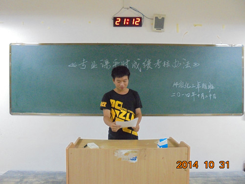 为促进教育和教学方法的改革,推进学生学习方法和学风的改进,经学院研究决定,自2014级本科生开始实施《专业课平时成绩考核办法》。为了让同学们更好的了解平时成绩考核的内容,2014年10月30日晚,我院以自习室为单位,组织2014级学生学习专业课平时成绩考核办法。