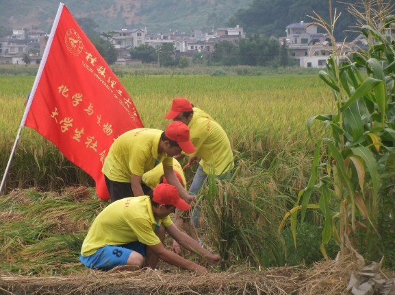 导航痕迹 当前位置: 首页 >> 伟德国际 >> 共青团 >> 正文 【暑期社会实践】化生学院2013年暑期“三下乡”系列报道七――走进基层义务支农 作者: 发布日期:2015-07-19 浏览次数: 为更深入走进基层,了解农村生活,7月14日下午,顶着炎炎烈日,伟德国际1946源于英国1946伟德国际源自英国暑期”三下乡”社会实践团队在卫田村党组织第一书记杨公银书记的带领下来到村民的稻田,义务为村民收割成熟的稻谷。 一到田里,志愿者们就拿起镰刀开始收割稻谷,尽管很多同学都是第一次收割稻谷,但在村民的指导下,怀着满腔热情的实践团成员们很快就掌握了收割的技巧与方法,一片片金黄的稻田很快就被志愿者们收割干净。活动中,志愿者们展现出的不怕苦不怕累的精神风貌得到了当地村民的一致好评。 本次活动,不仅让志愿者们亲身体验到基层百姓生活的艰辛,更让他们明白了每一粒粮食都来之不易,在今后的生活中,我们应珍惜粮食,发扬勤俭节约的传统美德。 成员们在去支农的路上 志愿者们为村民收割稻谷 支农场景 收割结束后的合影 上一条:【暑期社会实践】化生学院2013年暑期“三下乡”系列报道十――开启基层梦,夏日中国情:化学与生活及安全知识宣讲会 下一条:【暑期社会实践】化生学院2013年暑期“三下乡”系列报道六――提倡环保共行动,清洁乡村入民心