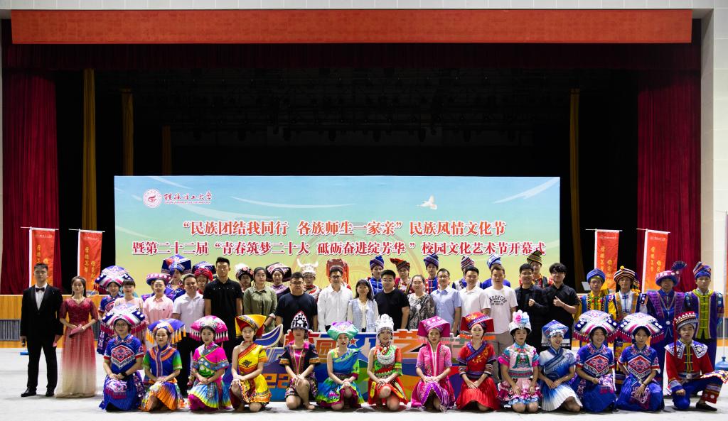 导航痕迹 当前位置: 首页 >> 伟德国际 >> 共青团 >> 正文 我院顺利承办学校“民族团结我同行 各族师生一家亲”民族风情文化节暨第二十二届校园文化艺术节开幕式 作者:王凯浩 发布日期:2023-04-21 浏览次数: 为了传承和弘扬中华优秀传统文化,铸牢师生中华民族共同体意识,4月20日晚,在壮族传统节日“三月三”到来之际,我院在雁山校区新体育馆顺利承办学校“民族团结我同行 各族师生一家亲”民族风情文化节暨第二十二届“青春筑梦二十大 砥砺奋进绽芳华 ”校园文化艺术节开幕式。学校党委统战部、团委相关负责人和二级学院党委副书记、团委书记、辅导员代表、千余名学生参加了此次活动。 活动伊始,校大学生艺术团舞蹈队为我们带来了节奏欢快的民族舞蹈《广西尼的呀》;阿卡贝拉队为我们带来了特色民歌串烧《壮族敬酒歌》《山歌好比春江水》《多谢了》;模特队为我们带来绚丽的民族服装展示《壮乡漓秀彩如歌》,演出充满浓郁的民族风情,现场气氛热烈,掌声欢呼声不断。 接下来,学校统战部副部长董译升和校团委副书记莫媛与共同为学校第二十二届校园文化艺术节揭幕。 开幕仪式后举行了民族风情主题游园活动。民族服饰换装展示、竹竿舞、滚铁环、板鞋竞速、抛绣球等15项具有少数民族特色的互动体验活动同时开展,形式灵活多样、内容丰富多彩,吸引了在场师生的热情参与。 据悉,本届校园文化艺术节紧紧围绕“青春筑梦二十大砥砺奋进绽芳华”主题,将开展一系列形式多样、健康向上的校园文化活动,丰富与充实校园文化生活,营造文明高雅的校园文化氛围,激发桂工学子热爱艺术、勤奋学习、努力成才的热情与动力。 上一条:喜报!我院辩论队荣获伟德国际1946源于英国第三十二届“桂工杯”辩论赛冠军! 下一条:我院开展“壮乡礼献,情满八桂”——三月三游园活动