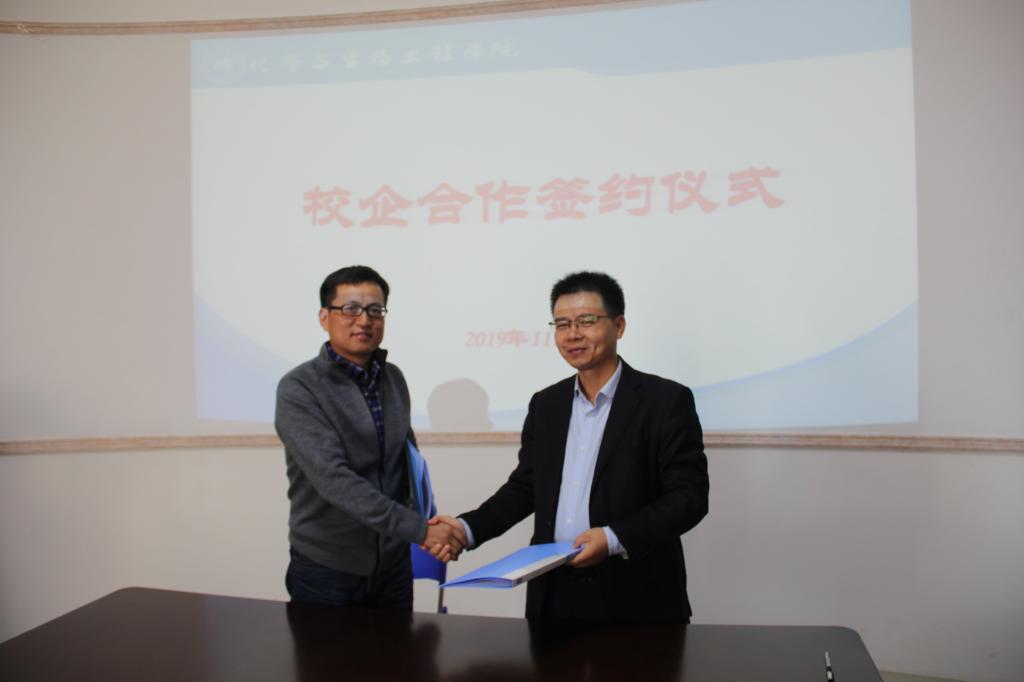 导航痕迹 当前位置: 首页 >> 招生就业 >> 就业 >> 正文 我院与浙江安诺芳胺化学品有限公司举行校企合作签约仪式 作者:梁精华 发布日期:2019-11-09 浏览次数: 2019年11月8日下午,我院与浙江安诺芳胺化学品有限公司校企合作签约仪式在12栋萃华楼12217会议室举行。浙江安诺芳胺化学品有限公司副总经理彭文博、人力资源经理马义、我院党委书记梁军、院长匡小军、副书记李南及化工教研室主任王桂霞受邀参与签约仪式,仪式由梁精华老师主持。 签约仪式上,学院党委书记梁军对浙江安诺芳胺化学品有限公司领导来我院签约表示热烈欢迎,并指出此次校企合作协议的签订是双方求共赢、谋发展的良好开端。随后,彭文博副总经理简要阐述了公司的基本情况,未来的发展思路以及用人需求情况,并表示很高兴能与我院在平台建设、师生员工实习实训等方面开展合作。他表示,公司将为学生提供良好的实习条件,确保学生实习安全,并着力使企业成为学生实战的课堂。 最后,学院党委书记梁军对我院四个专业的情况进行了简要介绍,并与企业从学生培养和专业发展角度进行探讨。他指出,希望通过搭建“实践教学基地”,拓宽学生的就业渠道,提高学生的实践能力。他表示,希望双方在今后合作中加强校企融合,促进专业发展,着力打造产学研合作平台,进一步推动校企合作实现跨越式共赢发展。 一直以来,我院高度重视对外合作,并致力于加强校校、校企、校商等平台的联合,倡导由点及面加深学院影响力,借此拓宽学生的就业视野,提升学生的综合就业竞争力。本次校企合作签约仪式搭建了校企合作育人平台,加深了校企友谊,对今后校企深度融合有积极作用,也为进一步形成“人才共育、培养共管、成果共享”的紧密型校企合作模式提供新的思路。 校企合作签约仪式现场 院长匡小军与浙江安诺化学副总经理彭文博签署校企合作协议 上一条:化生学院召开2020届建档立卡毕业生就业座谈会 下一条:杰出校友朱洪江应邀来我院开展就业指导讲座