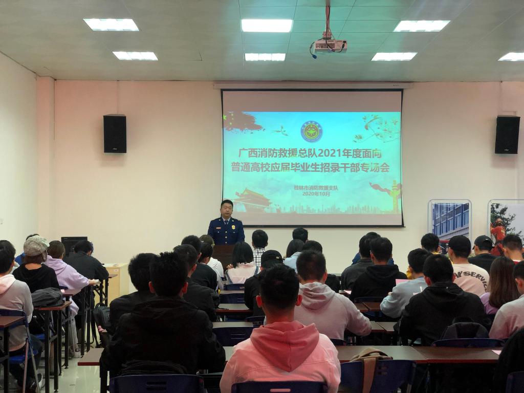 导航痕迹 当前位置: 首页 >> 招生就业 >> 就业 >> 正文 我院组织毕业生参加广西消防救援总队2021年高校应届毕业生招录干部专场会 作者:梁精华 发布日期:2020-10-23 浏览次数: 2020年10月23日,我院组织学生参加了由广西消防救援总队宣教中心组织的专场招聘宣讲会。1946伟德国际源自英国辅导员梁精华老师带队,学院共40余名毕业生参加了专场会。 招聘宣讲会在雁山校区招聘宣讲室召开。会上,支队政委详细介绍了消防救援支队的基本情况及本次招聘的背景、目的、岗位需求及主要工作内容等,分析阐述了“消防”这一特殊职业对保护地方经济建设、国家公共财产及人民生命财产安全、维护社会稳定等方面的重要作用,并就“消防人”所必备的的责任心、奉献意识、担当精神等基本职业素养进行了重点强调。随后,通过交流互动,部分学生与支队达成了就业初步意向。 宣讲会结束后,师生们参观了消防科普教育基地,“零距离”学习消防知识、体验消防工作,进一步了解了消防这个负有光荣使命的行业。宣讲人鼓励同学们积极主动参加招聘,了解单位和工作,准备好简历和面试,为未来就业打好基础。 本次招聘宣讲是广西消防救援总队面对我校学生开展的招聘活动,既是对毕业生的一次就业实践锻炼,也是一次特别的职业素养教育,更为双方单位建立长期的就业协作关系奠定了良好的基础。 招聘宣讲会现场 上一条:我院党委书记梁军带队走访广西华昇新材料有限公司助推校企合作 下一条:我院召开2021届毕业生就业工作推进会