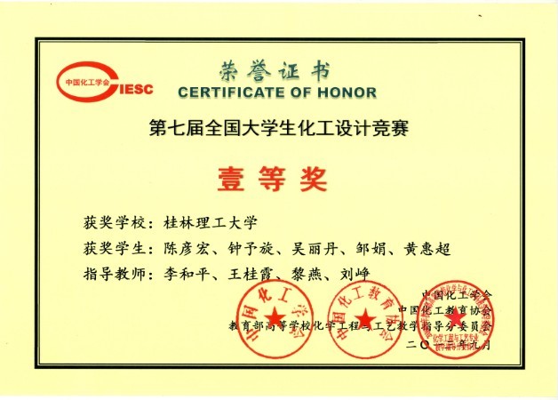 导航痕迹 当前位置: 首页 >> 新闻资讯 >> 学院新闻 >> 正文 我院学子在第七届全国大学生化工设计竞赛中勇夺全国总决赛一等奖与华南赛区特等奖 作者: 发布日期:2013-10-17 浏览次数: 为了多方面培养大学生的创新思维和工程技能,培养团队协作精神,增强大学生的工程设计与实践能力,实践“卓越工程师教育培养计划”,中国化工学会、中国化工教育协会、教育部高等学校化学工程与工艺专业教学指导分委员会举办了“中国石化-三井化学杯”第七届全国大学生化工设计竞赛。2013年全国大学生化工设计竞赛吸引了包括天津大学、清华大学、华东理工大学、浙江大学、四川大学、华南理工大学、南京工业大学、中南大学、大连理工大学、厦门大学、伟德国际1946源于英国等来自全国164所高校的1100余支队伍报名参赛,比赛竞争非常激烈。大学生化工设计大赛目前已发展成为是国内化工行业规模最大,水平最高的本科生赛事。大赛通过对化工企业工程项目的整体设计,对学生的化工知识综合运用能力、化工设计软件的应用能力和创新意识进行全方位考查,旨在从多方面培养大学生的现代工程设计、团队协作、工程实践和创新能力,成为充分展示高校科研、教学能力和综合设计实力的平台。我院组织化学工程与工艺专业2010级17支队伍参加了第七届全国大学生化工设计竞赛,取得参赛历史的最好成绩,共获得全国总决赛一等奖1项(华南赛区决赛特等奖)、二等奖1项(华南赛区决赛一等奖)、三等奖4项(华南赛区决赛二等奖)。获奖名单与成绩如下:表1 伟德国际1946源于英国第七届全国大学生化工设计竞赛获奖作品与成绩 序号 团队名称 设计项目名称 参赛学生姓名 获奖等级(全国总决赛) 获奖等级(华南赛区决赛) 1 Hydrocarbon Planet 年产5万吨微生物法生产丙烯酰胺工厂设计 陈彦宏、钟予旋、吴丽丹、邹娟、黄惠超 一等奖 特等奖 2 元素本纪 中石油(钦州石油)年产8万吨异丙醇分厂设计 李信、滕兴、陈秀明、齐婷、李银 二等奖 一等奖 4 灵感五次方 9万吨/年苯酚联产异丙醇工厂设计 李木佳、陈巧娜、胡亚军、陈思阳、孙昌吉 三等奖 二等奖 3 春风话语 年产10万吨丙烯异丙苯法合成苯酚工厂设计 龙光弦、李卓鹏、胡忠治、黎江钦、谭绵群 三等奖 二等奖 5 微创team 20万吨/年丙烯原料制丁辛醇工程设计 张海、樊晓宁、骆桥明、姚杰文、欧冰冰 三等奖 二等奖 6 中桂创艺组合 年产5万吨丙烯高温氯化法生产ECH项目设计 莫机官、龙俏安、覃机、莫胜坤、张健玲 三等奖 二等奖 注:注:指导老师均为李和平、王桂霞、黎燕、刘峥。 这是我院参加该比赛以来在全国总决赛与华南赛区获奖级别与获奖率最高的一次,这些佳绩的取得,离不开1946伟德国际源自英国老师和同学们的艰苦努力。竞赛正式开始到结束的时间历时4个多月,但实际耗时将近一年时间。大三第一学期开学不久,学院即召开动员大会,开始熟悉使用化工设计大型软件。今年4月底,设计竞赛的题目下达后,学生在李和平、王桂霞、黎燕、刘峥等四位老师的指导下,正式展开了设计工作。每个团队除了正常上课完成学业外,每天一小聚,三天一大聚,夜以继日地查资料、讨论、分析、咨询、决策、设计、撰写、绘图等,这样的生活和工作同学们一直坚持着,直到竞赛结束。在这期间,设计碰到许多困难与难题,但我们从来没有放弃过,以顽强的意志和坚定的毅力战胜了种种困难,最终我们学院报名参赛的17支队伍全部按时完成作品。我院李和平教授作为专家评委,全程参与了华南赛区和全国总决赛的作品评阅及现场答辩过程。参加全国总决赛合影参加全国总决赛合影获奖证书获奖证书 上一条:【群众路线教育实践】我院本科二支部举行2013级新生见面会 下一条:我院李和平、王桂霞参加第五届泛珠三角区域(“9+2”)高校化工专业本科教学工作会议