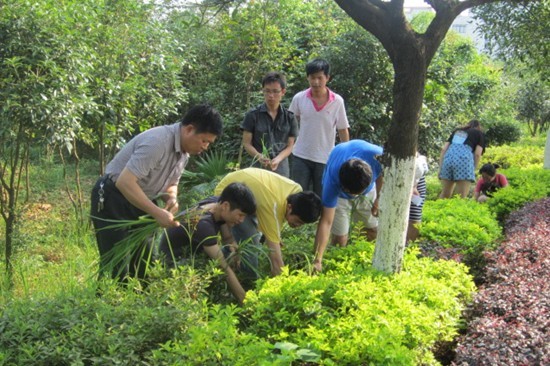 导航痕迹 当前位置: 首页 >> 新闻资讯 >> 学院新闻 >> 正文 化生学院2013届毕业生党员教育实践活动之二――“清洁校园,我争先锋”主题实践活动 作者: 发布日期:2013-06-21 浏览次数: 为秉承共产党员的优良传统,6月20日下午,学院各支部毕业生党员在学院党委胡祖生书记的带领下,进行以“清洁校园,我争先锋”为主题的实践活动。在活动中,全体毕业生党员清扫学院的卫生养护区,胡书记和同学们一起,顶着烈日,清除了绿化带内的杂草,经过一个多小时的辛勤劳动,为美化校园做出了自己的一份努力。这一次特殊的组织生活,深深地印在毕业生党员的脑海里,即将离校的他们,将带着为人民服务的意识,走向社会,回报社会。清扫校园现场 上一条:化生学院2013届毕业生党员教育实践活动之四――“牢记身份,毕业生党校”活动 下一条:化生学院隆重举行2013届毕业生欢送大会