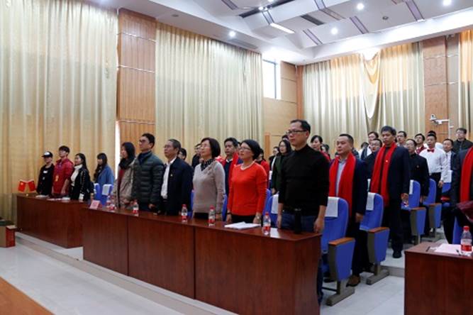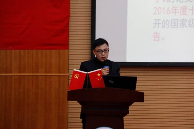 导航痕迹 当前位置: 首页 >> 新闻资讯 >> 学院新闻 >> 正文 牢记使命,砥砺前行——我院召开2017年度党建工作总结大会 作者:陈文甫 发布日期:2018-01-04 浏览次数: 1月2日下午,我院于萃华楼报告厅召开了2017度党建工作总结大会。学院党委委员、民主党派代表、教职工代表以及全体教职工党员参加了本次会议。 在会上,学院各教工党支部书记从党支部的思想建设、组织建设、作风建设、反腐倡廉建设、制度建设等方面,结合“两学一做”常态化制度化教育、强基固本工程、星级支部创建等对本支部一年来的工作进行总结汇报,并对新一年的支部党建工作做了计划。各教工党支部书记汇报结束后,学院党委书记梁军教授分别对各教工党支部书记的汇报进行了点评,同时从记牢“四个意识”,抓实思想政治建设、筑牢“强基固本”工程,抓实组织建设、树牢宗旨意识,抓实作风建设、把牢纪律防线,抓实反腐倡廉建设、织牢科学决策体系,抓实制度建设等五个方面总结了学院党委2017年党建工作情况,并对2018年学院党建重点工作进行了部署。 梁书记指出,2018年是“十三五”规划的重要一年,全院党员干部要围绕学校中心工作,积极行动,从我做起、从现在做起,以永不懈怠的饱满精神和一往无前的奋斗姿态认真做好党建工作,以党建引领教学科研、学风建设等等各项工作,为学院、学校各项事业发展作出新的更大贡献。 大会在雄壮的国歌声中拉开帷幕 化工教工党支部书记谭海军作汇报 应化教工党支部书记张云作汇报 学院党委书记梁军作总结 大会现场 上一条:我院召开统战工作座谈会 下一条:美国生物科技创业公司首席科技主管雷呈宏研究员到我院讲学