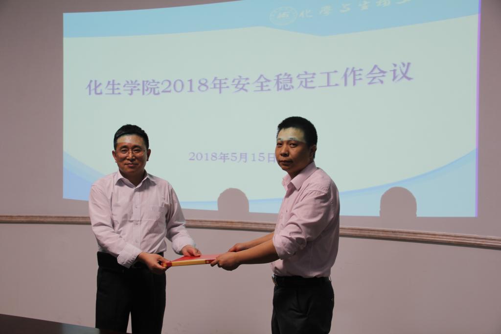 李建平院长还针对学院2018年安全稳定工作提出了具体要求。一是高度重视,不断增强责任感和紧迫感,切实把安全稳定工作摆在突出的位置并抓好落实。二是要根据学校要求,坚持安全稳定工作的“党政同责、一岗双责、齐抓共管”原则,高度重视意识形态工作,坚决维护以习近平同志为核心的党中央的绝对权威,在思想上、政治上和行动上保持和党中央高度一致。三是坚持“谁主管、谁负责”的工作原则,合理分解责任目标和任务,层层分解落实,重点做好实验室安全、办公场所、网络与信息、各类讲座报告和奖资助学审批管理、反邪教组织、重点人员和暂住人口管理、计划生育等工作,加强问题隐患排查整治和矛盾纠纷调处化解,努力构筑学院的安全防线。四是要抓好安全稳定督查、问责工作,实行安全稳定“一票否决”,对失职失责现象进行严肃追责。