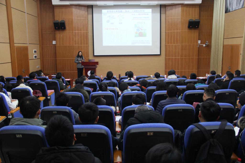 导航痕迹 当前位置: 首页 >> 新闻资讯 >> 学院新闻 >> 正文 南京大学燕红教授来我校讲学 作者:黄道坤、钟一靖 发布日期:2019-01-14 浏览次数: 应我院邀请,南京大学燕红教授于1月12日下午在雁山校区萃华楼学术报告厅做了题为“碳硼烷功能化及应用潜能”的学术报告。我院部分教师和全体研究生聆听了本次报告会。 报告会上,燕红教授从碳硼烷的性质、碳硼烷衍生物的应用、碳硼烷化学重要研究发展、碳硼烷调控配合物的发光及碳硼烷调控三苯胺衍生物的双光子吸收等方面详细介绍了碳硼烷,并以大量的实例阐释了碳硼烷衍生物发光材料及其在生物成像等方面的潜在应用。燕红教授谈到,搞科研要有恒心,忌讳跟着热点转,不时换研究方向。她坚持从事这一课题研究达到近二十年,研究成果已经居于国际领先水平。这种坚韧的科研态度给与会人员留下深刻映象。 燕红教授的学术报告内容丰富、重点突出,具有很强的专业性,既加深了师生们对碳硼烷功能化与应用潜能的了解,也拓展了大家的科研视野,对今后相关领域的科学研究具有积极地推动作用。 南京大学燕红教授作学术报告 报告会现场 上一条:教育部新世纪人才、湖湘青年英才、湖南省杰出青年基金获得者、中南大学升华学者特聘教授潘安强来我院讲学 下一条:我院成功举办1946伟德国际源自英国学术年会暨广西电磁化学功能物质重点实验室、广西植物功能物质研究与利用重点实验室2018年学术研讨会