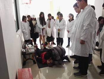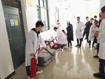 我院庞有勇老师向同学们详细介绍了消防栓、灭火器、消防应急器材柜以及消防安全逃生路线图等功能与使用知识,还就实验室应急喷淋、急救包等安全设施的使用方法进行了现场讲解与使用演示。我院杨文老师为同学们演示了灭火器的使用方法,同学们还练习了灭火器的操作步骤。另外,杨老师利用心肺复苏演练设备,为大家详细讲解并演示了心肺复苏的全过程。