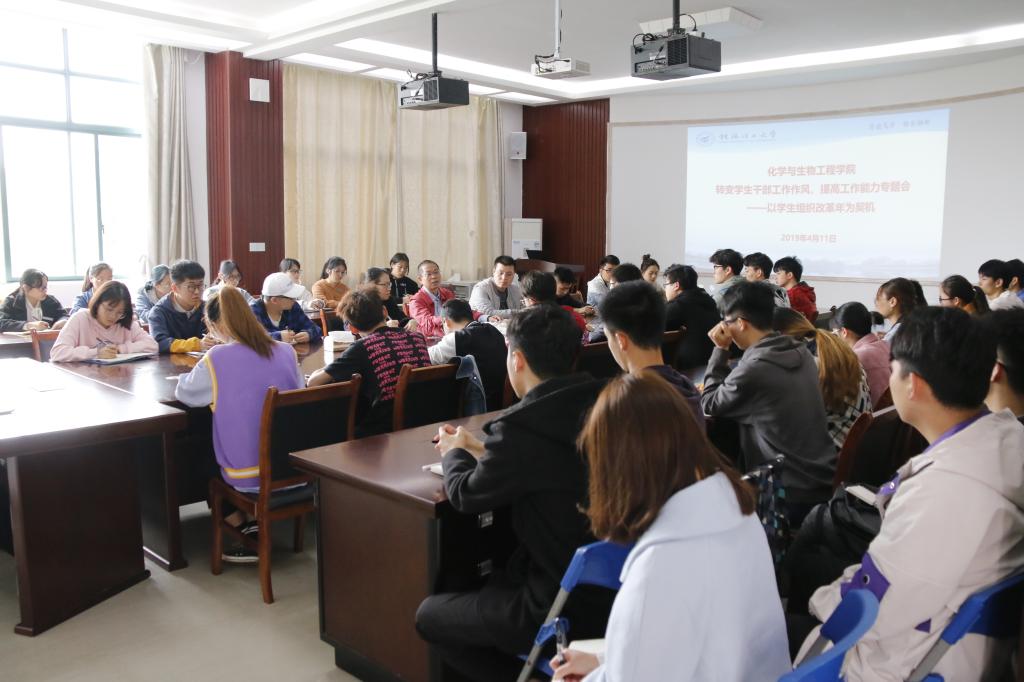 为进一步加强和改进学生组织和学生骨干队伍建设。学院以学生组织改革年为契机,2019年4月11日,在12217多功能会议室召开“转变学生干部工作作风,提高工作能力”专题会议。学院党委书记梁军、党委副书记江玲,学生工作办公室全体专兼职辅导员与各组织学生骨干参加了会议。会议由学院党委副书记江玲主持。