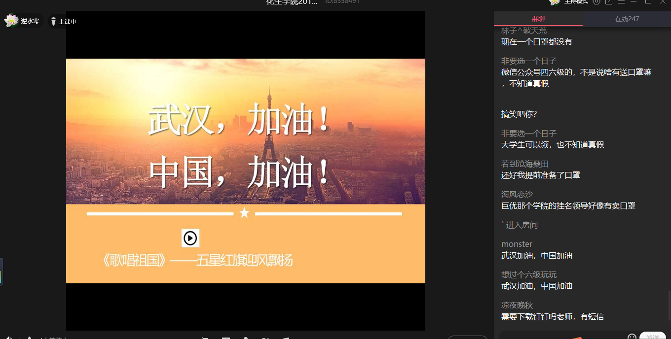 通过线上主题班会,老师们对学生们反馈的生活问题、心理困惑、开学时间等给予积极回应,与同学们设计一份属于他们的“宅家”攻略。同学们表示一定会听从学校及学院安排,没有准确通知绝不提前返校,同时做到“停课不停学、学习不延期”,合理安排延长假期的生活与学习,努力以积极、健康的良好状态来战胜疫情和迎接复学。