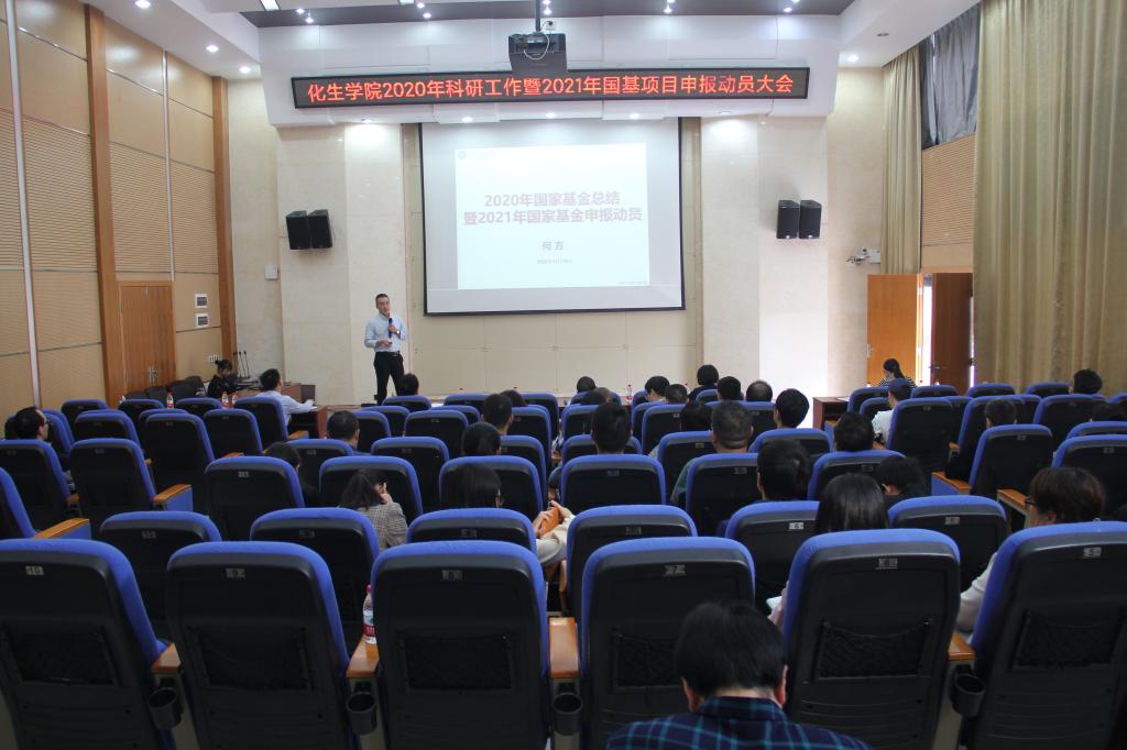 会上,学院副院长何方代表学院对2020年国家自然科学基金项目申报工作进行了总结。何副院长对近几年我院、学校、区内其他高校以及全国自然科研基金项目有关数据进行详细分析,使大家更清楚地认识目前我院在此项工作中所处的境况。何副院长还总结我院在此方面存在问题与不足。何副院长还还对我院出台的相关鼓励办法进行了讲解,并就2021年国家自然科学基金项目申报工作进行了布置。