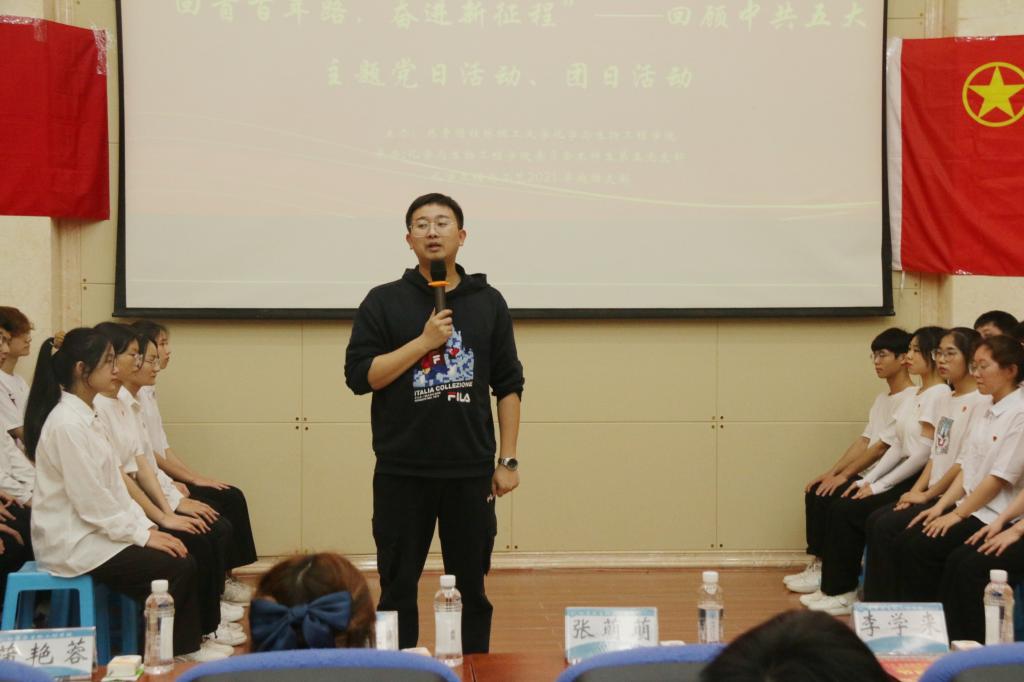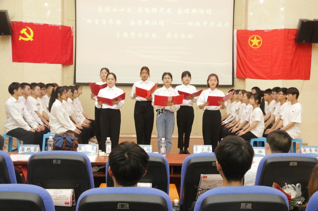导航痕迹 当前位置: 首页 >> 新闻资讯 >> 学院新闻 >> 正文 “喜迎二十大,永远跟党走,奋进新征程”大型团日活动 作者:李学来 发布日期:2022-05-23 浏览次数: 为使同学们回顾历史,坚定信念,学习党之精神,拥护党,团结党。5月27日,我院化工21-卓越团支部在萃华楼报告厅举办“回首百年路,奋进新征程”主题团日活动。出席本次活动的有张萌萌老师,21级卓越团支部全体成员。 活动伊始,全体人员共唱共青团团歌,团日活动由此拉开序幕。首先,全体人员观看了令人激昂振奋的视频《学党史 忆初心——中共五大:狂澜江城路何方》。从那时起,信仰就是我们队伍高扬的战旗;从那时起,信仰就如血脉融入党的肌体。随后化生学院艺术团朗诵队为我们带来红色诗朗诵《信念永恒》。让全场人员再次接受了红色精神洗礼,进一步坚定了理想信念。朗诵结束后,到了党史知识竞答环节,通过竞答让同学们对我们的党有了更深的了解,回顾建党百年伟业,感受革命情怀。接下来是艺术团带来演唱歌曲《孤勇者》,激情澎湃的歌曲启示着我们迎难而上,敢于斗争,砥砺前行。最后,由张萌萌老师上台对本次活动进行总结与点评。 “回首百年路,奋进新征程”。此次团日活动提升了同学们的责任感与使命感,我们要勇敢地承担起世纪重托,我们要做跨越世纪的一代,树立远大的理想,培养良好品德,发扬创新精神,掌握实践能力,勤奋学习,立志成才,做个新世纪的社会主义事业建设者。 活动全景 全体合唱团歌 红色诗朗诵 艺术团演唱 张萌萌老师致辞 上一条:长春理工大学苏忠民教授到我院讲学 下一条:梁福沛副校长到我院检查指导生物工程专业工程教育认证准备工作