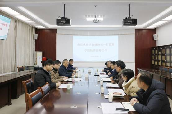 导航痕迹 当前位置: 首页 >> 新闻资讯 >> 学院新闻 >> 正文 王敦球校长一行到我院检查指导开学工作 作者:刘耀明 发布日期:2024-03-11 浏览次数: 3月4日上午,学校校长王敦球在学工处、本科生院等部门领导陪同下到我院检查指导新学期开学工作,深入课堂听课,并在雁山校区12217会议室召开了座谈会。我院全体党政领导班子成员参加了会议。 会上,我院党委书记彭代江、院长匡小军分别就开学准备工作、党的建设与全面从严治党工作、学科建设工作等方面的情况进行了汇报。 听取汇报后,王敦球校长对我院的开学工作表示肯定,并根据学校党委三届七次全会、处级干部培训会等会议精神和决策部署,对学院下一步的工作提出了要求:一是要传达落实好学校会议精神,明确工作目标,责任人到人,确保各项工作落到实处,取得实效;二是要强化本科教育教学工作,在教学改革和教学成果奖方面取得更大成绩;三是要做好有组织的科研工作,在科研团队建设和科研项目申报方面加强组织领导,争取获得更多成果;四是要继续做好博士点申报的后续工作,并谋划好专业博士点方面的建设,力争获得突破。 王敦球校长讲话 座谈会现场 听课检查 (一审:刘耀明,二审:李霞,三审:彭代江) 上一条:我院召开学院2024年改革发展研讨会 下一条: 我院组织观看全国优秀教师代表“教育家精神”2024年巡回宣讲(广西站)