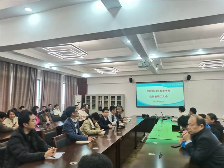 导航痕迹 当前位置: 首页 >> 新闻资讯 >> 学院新闻 >> 正文 我院召开2024年春季学期全院教职工大会 作者:刘耀明 发布日期:2024-03-13 浏览次数: 2024年3月8日上午,我院在雁山校区教12楼12407会议室召开2024年春季学期全院教职工大会,学院全体教职工参加。会议由学院院长匡小军主持。 会上,学院各分管领导分别就所分管领域2024年工作计划和措施作了详细介绍。匡小军院长对学院2024年工作提出了要求,一是要求老师们明确学院的工作目标和举措,统一思想认识;二是要求各教研室加强组织工作,为完成学院各项工作提供有力的组织保障;三是感谢老师们在寒假期间完成了博士点、一流课程、教学团队以及科研项目等申报材料的撰写工作,希望老师们继续做好后续工作。 彭代江书记传达了学校处级领导干部专题培训会精神,对会议作了总结讲话。他对全体教职工在去年工作中所付出的辛苦努力表示衷心的感谢,同时要求大家总结好去年工作中的经验教训,为做好今年的工作继续努力奋斗。他强调,一是要把握好机遇,明确任务目标和完成的时间节点,责任到人;二是要立足广西的特色和优势,在服务地方产业发展方面做更多探索,力争获得更多项目;三是要始终紧绷安全的弦,加强实验室安全工作,完善好实验室值班制度。最后,他希望老师们坚定信心,凝心聚力,协同配合,完成好今年学院的各项工作,为推动学院高质量发展做出新的更大贡献。 会议现场 (一审:刘耀明,二审:何方,三审:彭代江) 上一条:我院召开2024年国家自然科学基金申报书评审会 下一条:我院召开学院2024年改革发展研讨会