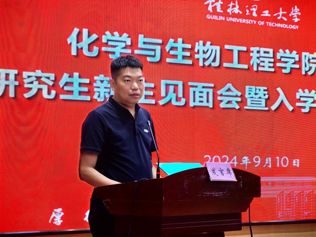导航痕迹 当前位置: 首页 >> 新闻资讯 >> 学院新闻 >> 正文 学院召开2024级研究生新生见面会暨入学教育启动仪式 作者:黄道坤 发布日期:2024-09-10 浏览次数: 9月10日晚,学院在雁山校区图书馆报告厅隆重召开2024级研究生新生见面会暨入学教育启动仪式。学院党政领导、硕士生导师代表、研究生辅导员、研究生老生代表以及2024级全体研究生参加了本次会议。 会上,学院党委书记彭代江代表学院对212名研究生新生的到来表示热烈的欢迎和亲切的问候。他以一名师长的身份对同学们提出了三点希望:一是要心系祖国,树立远大人生理想;二是要诚信为学,坚守良好的学术道德;三是要勇于实践,坚持用创新思维服务社会。院长匡小军以“相约在化生,梦想与成功”为主题,从创新的角度畅谈化学与生物在人类社会发展中的至关重要作用。用一组组数据“数说化生”,介绍了学院发展历史、学科建设、平台建设情况;向同学们讲述了110余位教师接续奋斗的历程,为同学们传递“灯塔”的力量;聚焦科研团队、实验设备、学术活动等内容,介绍了学院科研力量;通过列举大量优秀在校生和校友的先进事迹,寄语同学们愿破茧成蝶,圆梦化生,争做新时代好青年。副院长孔翔飞从研究生专业、导师互选、研究生培养、课程学习、论文撰写等方面,向同学们详细介绍了学院硕士研究生培养工作情况。 学院导师代表杨小燕结合自己的求学经历,从保持学习热情、拓宽学术视野、提升创新能力和培养科学素养等方面进行了发言,勉励同学们尊重科学、尊重真理,为科学发展和社会进步贡献自己的一份力量。新生代表王璐表示将立德修身、明确目标、提升素养,做一个诚实守信、兢兢业业的学者。老生代表潘岩发言,勉励学弟学妹们要做好学涯规划、及时转变身份、注意沟通交流,顺利完成吃苦耐劳坚持到底的学术修行。 最后,研究生辅导员介绍了新生入学教育方案,并进行了新生入学安全专题教育。 学院党委书记彭代江致辞 学院院长匡小军介绍学院情况 学院副院长孔翔飞介绍研究生培养要求 导师代表和学生代表发言 学院为新生赠送入学礼 (一审:黄道坤;二审:宋海民;三审:李少华) 上一条:我院召开2024年秋季学期全院教职工大会 下一条:学院举办2024级本科新生见面会暨入学教育启动仪式