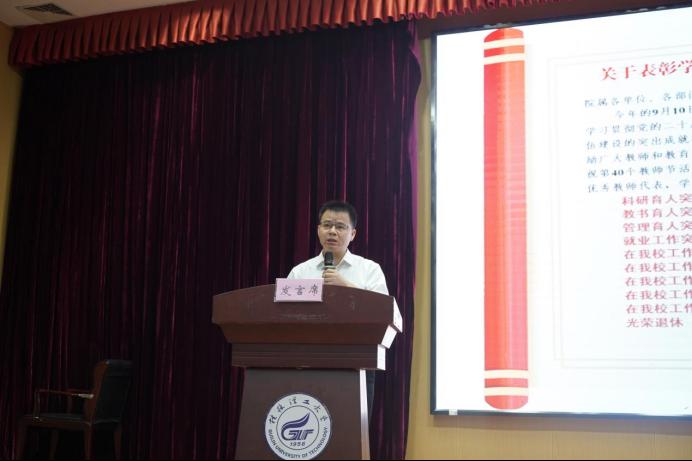 导航痕迹 当前位置: 首页 >> 新闻资讯 >> 学院新闻 >> 正文 躬耕教坛 强国有我--1946伟德国际源自英国庆祝2024年教师节活动圆满成功 作者:马文硕 发布日期:2024-09-12 浏览次数: 为充分展现高质量教师队伍建设的突出成就和广大教师立德树人、自信自强的精神风貌,大力营造尊师重教的良好氛围,化生学院以庆祝第40个教师节为契机,于9月11日上午在雁山校区图书馆报告厅开展以“躬耕教坛 强国有我”为主题的教师节庆祝活动。学校党委常委、副校长黎贞崇、学院党委书记彭代江、院长匡小军以及学院全体教师、学生代表等200余人参加了本次活动。 活动伊始,黎贞崇发表了热情洋溢的致辞,他饱含深情地分享了那些平凡而又动人的故事,每一个细节都透露出对教育事业的热爱与执着,深深感染了现场的每一名教职工。黎贞崇强调广大教职员工要以教育家为榜样,认真学习、深刻领悟,大力弘扬、自觉践行教育家精神,牢记为党育人、为国育才的初心使命,树立“躬耕教坛、强国有我”的志向和抱负,一是坚定理想信念,提高政治站位,领悟并传播教育家精神深邃的历史穿透力;二是坚持立德树人,廉洁从教,领悟并传播教育家精神优秀的榜样引领力;坚持严谨治学,宽厚育人,领悟并传播教育家精神深厚的育人智慧力;坚持厚德笃学、惟实励新,领悟并传播教育家精神深远的实践指引力。 随后,学院院长匡小军宣读了《关于学院表彰“从教三十年、二十五年、二十年、十五年、十年教师”及教书育人、科研育人、管理育人、就业工作突出贡献奖的决定》并进行了表彰活动。 会上,优秀教师代表王秀丽分享了从教多年来的心得感悟,号召全体教师践行为党育人、为国育才的初心使命,争做新时代的教育家,努力成为学生的引路人、知识的传授者和新技术的创新者。 活动最后,在场的学生们纷纷借助这个难得的机会,向他们敬爱的老师们进行了深情而真挚的告白,或手捧鲜花,或眼含泪光,用颤抖的声音诉说着老师们平日里那些默默无闻却又温暖人心的瞬间。他们讲述了老师们如何在知识的海洋里为他们引航,如何在成长的道路上给予他们鼓励与支持,又是如何在面对困难和挑战时,用坚定的信念和无私的奉献为他们树立了榜样。这场深情的告白,不仅是对老师们辛勤付出的肯定与感谢,更是师生之间深厚情感的交流与传递。 学校党委常委、副校长黎贞崇致辞 匡小军院长宣读表彰决定 各位领导为受到表彰的老师颁奖 教师代表王秀丽老师发言 学生向老师深情告白 合影留念 (一审:马文硕;二审: 李少华 ;三审: 彭代江 ) 上一条:学院赴桂林市人民医院开展研讨交流 下一条:学院召开教职工大会专题学习贯彻党的二十届三中全会精神