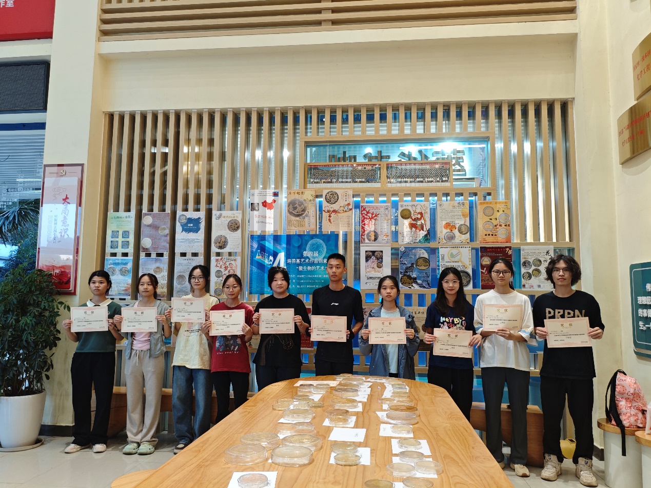 为了进一步提高学生的创新实践能力和推进美育课程建设,1946伟德国际源自英国生物工程专业于11月12日在雁山校区萃华楼1楼大厅成功举办了第四届培养基艺术作品创意大赛决赛。本届比赛共吸引全校6个学院17个专业150多名学生参加,充分展示了不同学科背景学生之间的协同创新实践实力。 本届比赛分为作品创意设计线上评选和实物线下展示两个阶段。创意设计线上评选活动于9月26日开始,为期8天,共33副作品参赛,共计获得24725张网络投票。经过1个多月的实验室操作各小组完成了32件最终作品。11月12日比赛现场邀请了学院副院长李霞、生物工程教研室主任李静、实验中心主任李子院、专任教师张会香、关媛等五位老师担任专家评委,邀请本校教师学生共100多人作为大众评委对各小组的海报和培养基实物作品进行打分和投票。 通过专家评选和大众评委投票共评出一等奖2项、二等奖5项、三等奖10项、最佳创意奖3项、最佳作品完成奖3项。学院推荐17项获奖作品参加了第六届广西大学生创意、创新和创业竞赛,最终获得区级一等奖1项、二等奖5项、三等奖5项。 专家评委评选现场(1) 专家评委评选现场(2) 大众评委评选现场(3) 获奖小组合影(4) 一审:张会香 二审:马文硕 三审:李静