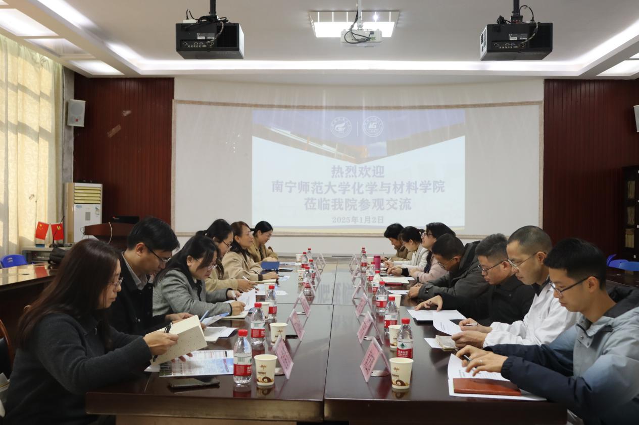 导航痕迹 当前位置: 首页 >> 新闻资讯 >> 学院新闻 >> 正文 南宁师范大学化学与材料学院到我院开展参观交流 作者:马文硕 发布日期:2025-01-06 浏览次数: 1月2日下午,南宁师范大学化学与材料学院副院长朱汝葵、杨 晶、党委副书记陈今浩等一行7人来访我院,就化学专业高水平发展思路与实践、虚拟仿真实验教学中心建设与实践经验、学院教学与科研管理的激励机制等开展座谈参观交流。学院副院长李霞、孔翔飞热情接待了来访客人。学院院长助理袁亚利、化学与化工教研室主任王桂霞、能源化工教研室主任黄斌、实验中心主任李子院、应用化学教研室副主任黄艺鹏参加了座谈,座谈会由学院副院长李霞主持。 李霞副院长对南宁师范大学的各位老师来院座谈交流表示欢迎,并从学院历史、学科发展、人才培养与师资队伍、科学研究与社会服务等方面简要介绍了我院基本情况。随后,双方围绕本科教学、人才培养、工程教育认证、“—流专业”、“一流课程”建设、科研等方面问题进行了深入交流和探讨,并希望今后继续加强交流与合作。 会后来访领导一行人还实地参观了虚拟仿真实验教学中心等实验实践平台。 座谈会现场 参观实验室 (一审:马文硕 二审:袁亚利 三审:李霞) 上一条:1946伟德国际源自英国组织全体教师学习《中华人民共和国学位法》 下一条:集美大学原校长李清彪教授应邀到我院作学术报告