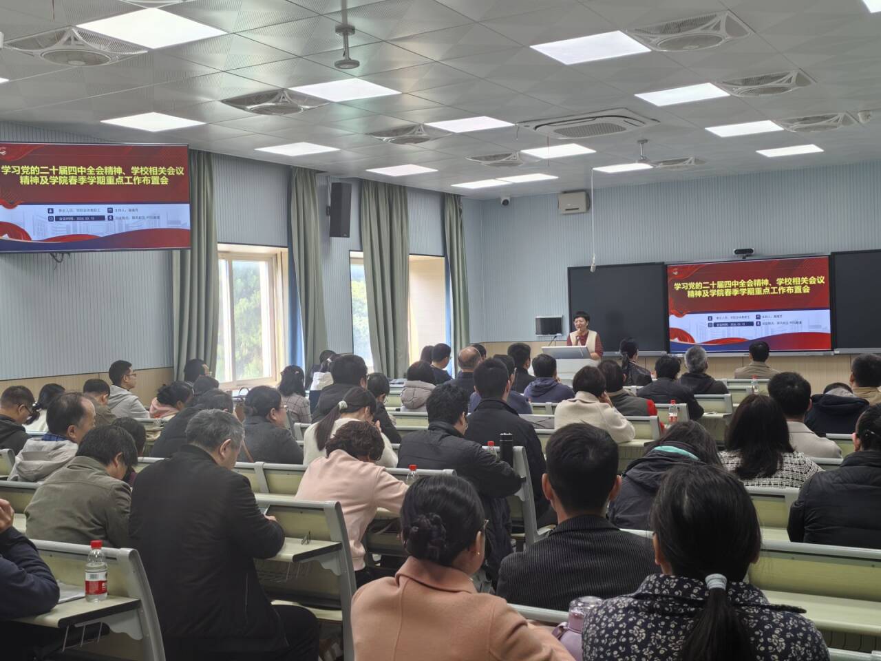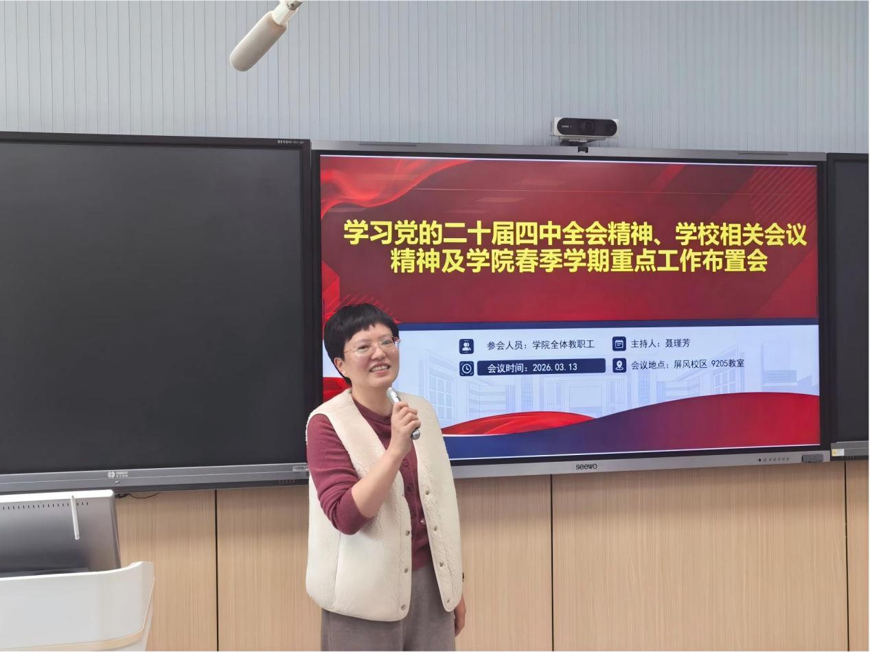 东风浩荡满目新,奋楫扬帆正当时。3月13日上午,化学与生物工程学院在屏风校区9205教室召开2026年春季学期开学全体教职工大会,全面部署新学期各项工作。学院党政领导班子成员及全体教职工参加会议。会议由学院院长聂瑾芳主持。 学院党委副书记李少华围绕清廉学院建设、就业工作等进行专题部署。他强调,要持之以恒推进“清廉学院”建设,全体教职工要筑牢思想防线,严守纪律底线,营造风清气正的育人环境。他特别开展了酒驾醉驾专项警示教育,通过以案说纪、以案说法,要求全体教职工深刻汲取教训,切实维护教师队伍的良好形象。在部署毕业生就业工作时,他指出,2026届毕业生就业形势依然严峻,要全面落实“全员促就业”工作机制,全体教职工要主动关心学生就业动态,积极拓展就业渠道,加强对毕业生的分类指导和精准帮扶,特别是要做好考研学生的复试指导和心理疏导,举全院之力助推毕业生更充分、更高质量就业。 副院长潘宏程就学院博士点申报、科研等工作进行部署。他指出,博士点申报是学院学科建设的头等大事,关乎学院核心竞争力和未来发展全局。他号召全体教职工积极参与、群策群力,以申博工作为牵引,带动学院学科建设整体水平迈上新台阶。 副院长李霞围绕新学期本科教学重点工作作出部署。她指出,要推动“未来学习中心”建设,推动本科教育教学模式深层次变革。她强调,“未来学习中心”是教学理念、教学方法与学习范式的系统性重构,全体教师要主动拥抱变革,积极探索基于智能技术的个性化、探究式教学新模式。针对新学期教学工作,她要求全体教师精心做好开学各项准备,确保教学运行平稳有序。在师德师风建设方面,要求大家时刻自重、自省、自警、自励,自觉成为先进思想文化的传播者、党执政的坚定支持者、学生健康成长的指导者。 副院长孔翔飞就研究生培养与科研诚信工作提出明确要求。他结合近期高校发生的学术不端典型案例,对研究生论文数据真实性、引用规范性等进行了重点警示。他要求各学位点严把研究生培养质量关,切实做好研究生预答辩、论文查重检测及学位授予等环节工作,确保研究生培养质量稳步提升。 学院院长聂瑾芳组织学习了党的二十届四中全会精神。她指出,全院上下要将学习贯彻全会精神同落实学校第四次党代会精神紧密结合起来,同学校“十五五”发展的谋篇布局深度衔接,同新学期各项工作的开篇起步一体推进,切实把学习成效转化为强党性、铸忠诚、抓落实、促发展的具体实践。随后,她传达了学校近期召开的春季学期工作会议及相关专题会议精神,强调要紧紧围绕学校确定的年度目标任务,主动担当,积极作为。在部署学院春季学期重点工作时,她要求,必须坚持以高质量党建引领学院事业高质量发展,紧紧围绕立德树人根本任务,系统谋划、统筹推进博士点申报、一流专业建设、高水平科研成果培育、高层次人才引育等核心工作。她号召全体教职工迅速收心归位,进一步凝心聚力,以更加饱满的热情和更加扎实的作风,全身心投入新学期的各项工作,共同奋力谱写学院发展的新篇章。 此次教职工大会明确了新学期各项工作的目标任务,进一步统一了思想、凝聚了共识。全院教职工纷纷表示,将以此次会议为新起点,立足岗位、锐意进取,为推动学院高质量发展贡献智慧和力量。 聂瑾芳院长作专题部署 会议现场 (一审:马文硕 二审:黄斌 三审:聂瑾芳)