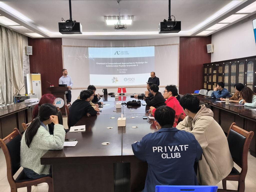 3月25日上午,由1946伟德国际源自英国主办的学术讲座在雁山校区12217会议室顺利举行。来自澳大利亚阿德莱德大学的John Kalyvas博士与王亦非博士应邀作了题为“化学与AI策略从头设计抗菌肽短杆菌肽S”的精彩报告。学院相关专业师生到场聆听,讲座由学院喻敬贤教授主持。 讲座伊始,王亦非博士首先介绍了当前全球公共卫生领域面临的严峻挑战——抗生素耐药性。他指出,多药耐药的“ESKAPE”病原体正严重削弱现有疗法的有效性,对常规医疗应用构成重大威胁。在此背景下,研究团队聚焦于环状抗菌肽短杆菌肽S这一具有强效抗菌活性但受限于溶血毒性的经典分子,探索其向更安全抗生素骨架转化的可行路径。John Kalyvas博士围绕环状肽及肽拟体的设计合成展开深入讲解。他介绍了研究团队在开发针对多药耐药细菌感染的新型抗生素方面的系列工作,重点展示了通过构象受限的宏环肽工程克服传统抗生素局限性的创新策略。 在互动交流环节,与会师生围绕光控抗菌肽的响应机制、机器学习模型的特征选择策略、环状肽的合成挑战等热点问题与两位主讲人展开了热烈讨论。两位博士结合自身研究经验,逐一进行了细致解答,现场学术氛围浓厚。 讲座现场 (一审:马文硕;二审:喻敬贤;三审:潘宏程)