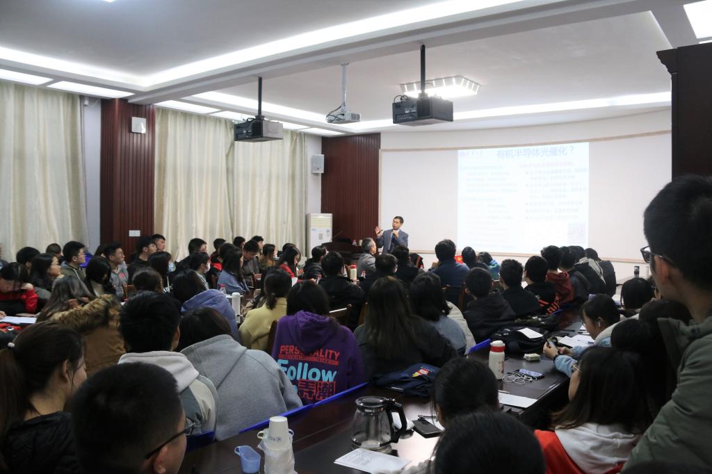 导航痕迹 当前位置: 首页 >> 科学研究 >> 学术动态 >> 正文 我院举办广西电磁化学功能物质重点实验室2020年学术年会第二期系列学术报告活动 作者:唐群、钟福新 发布日期:2020-11-30 浏览次数: 11月26日至27日,我院在雁山校区12号楼负一楼学术报告厅、12217多功能室举办了广西电磁化学功能物质重点实验室2020年学术年会第二期系列学术报告活动。本次活动邀请了清华大学朱永法教授,华中科技大学赵海波教授,昆明理工大学李孔斋教授、祝星教授等4位专家作学术报告。我院相关专业师生聆听了专家们的报告。 朱永法教授在题为“全有机高分子可见光催化环境能源及癌症治疗研究”的报告中介绍了其课题组开展光催化研究情况。他重点讲解了具有超强氧化能力及可见光催化性能的PDINH超分子的高度有序组装、氨基酸取代的PDI超分子的能带构筑及氨基酸碳链长度对PDI结构和可见光催化性能的调控、PDI自组装三维网络结构、PDI-尿素聚合物光催化、C3N4/rGO/PDIP全解水体系构建、π-π作用对PDI光催化性能的提升、无机光催化剂与PDI复合构筑全光谱光催化剂、分子偶极对光催化活性的调控、可见光光催化有机合成、PDI光催化靶向快速高效杀灭Hela细胞等方面的基础研究与应用以及取得的丰硕成果。 赵海波教授作了题为“化学链燃烧和高值化”的学术报告。赵教授首先介绍了化学链燃烧的研究进展,并围绕其课题组近年来在化学链燃烧和高值化方面的科研进展,深入剖析了化学链燃烧过程中氧载体的筛选和主动设计、氧载体的功能原理和反应动力学机理、化学链燃烧反应器的设计、运行以及数值模拟。最后,赵教授讲解了利用化学链燃烧实现化学链高值化的应用实例。 李孔斋教授的报告题目为“CO2加氢制甲醇催化剂构建与催化机理”。他介绍了在国家二氧化碳减排战略需求下,二氧化碳减排的主要发展方向以及技术思路。李教授然后重点介绍了其团队在二氧化碳加氢制甲醇催化剂构建方面的研究进展以及对催化剂设计与界面催化剂机制、水在二氧化碳加氢制甲醇中作用的探讨情况。李教授还对二氧化碳加氢制甲醇催化剂的相关研究进行了总结和展望。 在题为“化学链部分氧化及典型案例分析”的报告中,祝星教授介绍了化学链的起源和发展、化学链的优势、化学链用途及其适用范围、化学链工艺设计策略等。祝教授结合其团队近年来的研究成果,详细介绍了化学链部分氧化的典型案例以及在乙苯氧化脱氢中的应用。 专家们的精彩报告引起了现场师生们的极大兴趣。在互动环节,师生们踊跃提问,专家们认真解答了所有问题。 本次学术报告活动是我院广西电磁化学功能物质重点实验室2020年学术年会开展的第二次学术活动,为学院相关专业师生营造了浓厚学术氛围,使师生们对相关研究领域的前沿研究和应用有了更深了解,开拓了学术视野,进一步提升了他们对相关领域科研工作的兴趣和动力。 朱永法教授在作报告 赵海波教授在作学术报告 李孔斋教授在作学术报告 祝星教授在作学术报告 学术报告会现场(一) 学术报告会现场(二) 上一条:【学术报告】北京化工大学赵宇飞教授到我院讲学 下一条:【学术报告通知】广西电磁化学功能物质重点实验室2020年学术年会系列学术报告(二)