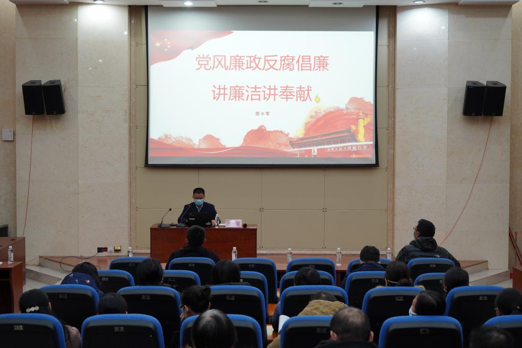 导航痕迹 当前位置: 首页 >> 党建工作 >> 党风廉政建设 >> 正文 【党风廉政】我院开展党风廉政建设专题党课 作者:李学来 发布日期:2022-12-08 浏览次数: 为深入学习贯彻党的二十大精神,切实增强党员教师廉洁从教意识,筑牢师德师风防线,积极营造风清气正的教育教学环境,12月8日下午,我院召开全体党员大会,开展党风廉政建设专题党课,学院全体党员教师参加。 会上,学院院长匡小军以《党风廉政反腐倡廉--讲廉洁讲奉献》为题,以案释法、深入浅出地为大家上了一堂生动详实的廉政党课。党课从党风廉政建设的重要性、如何抓好党风廉政建设、反腐的重要举措与成果、全面从严治党四个方面,结合典型案例,详细论述了党员教师严守党规党纪、敢于担当作为的新精神和新要求,教育引导全体党员教师要时刻牢记入党誓词,不忘初心,永守底线,恪守红线,不断加强作风建设。 新使命呼唤新担当,新征程期待新作为。此次专题党课内容丰富、感染力强,正面引导和反面警示相结合,增强了党风廉政教育效果。大家纷纷表示警醒很深、触动很多、受益匪浅,将严格遵循党章要求、严格遵守党规党纪,争做新时代合格党员,为推动学院各项事业更上新台阶作出应有贡献。 党课现场 上一条:【党风廉政】我院召开2023年春季学期全面从严治党工作专题会议 下一条:【党风廉政】我院召开2022年秋季学期党风廉政建设专题会议
